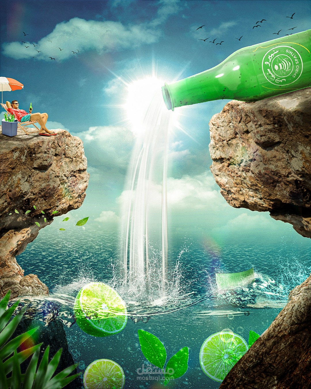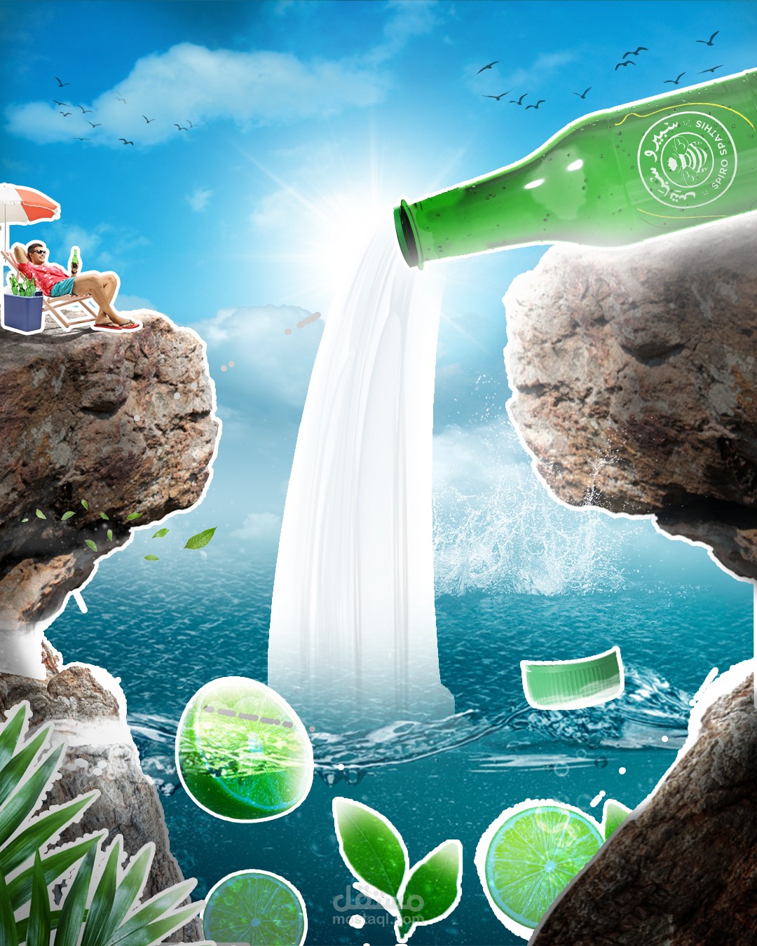 تصميم احترافي باستعمال الدمج في الفوتوشوب لمشروب سبيرو سباتس بطعم الليمون
