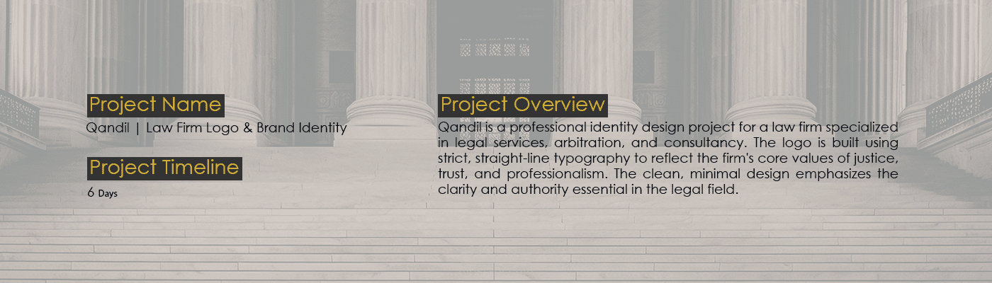الهدف كان تصميم شعار بسيط ومهني، يعكس طبيعة العمل القانوني دون استخدام رموز مباشرة كالموازين أو المطارق.