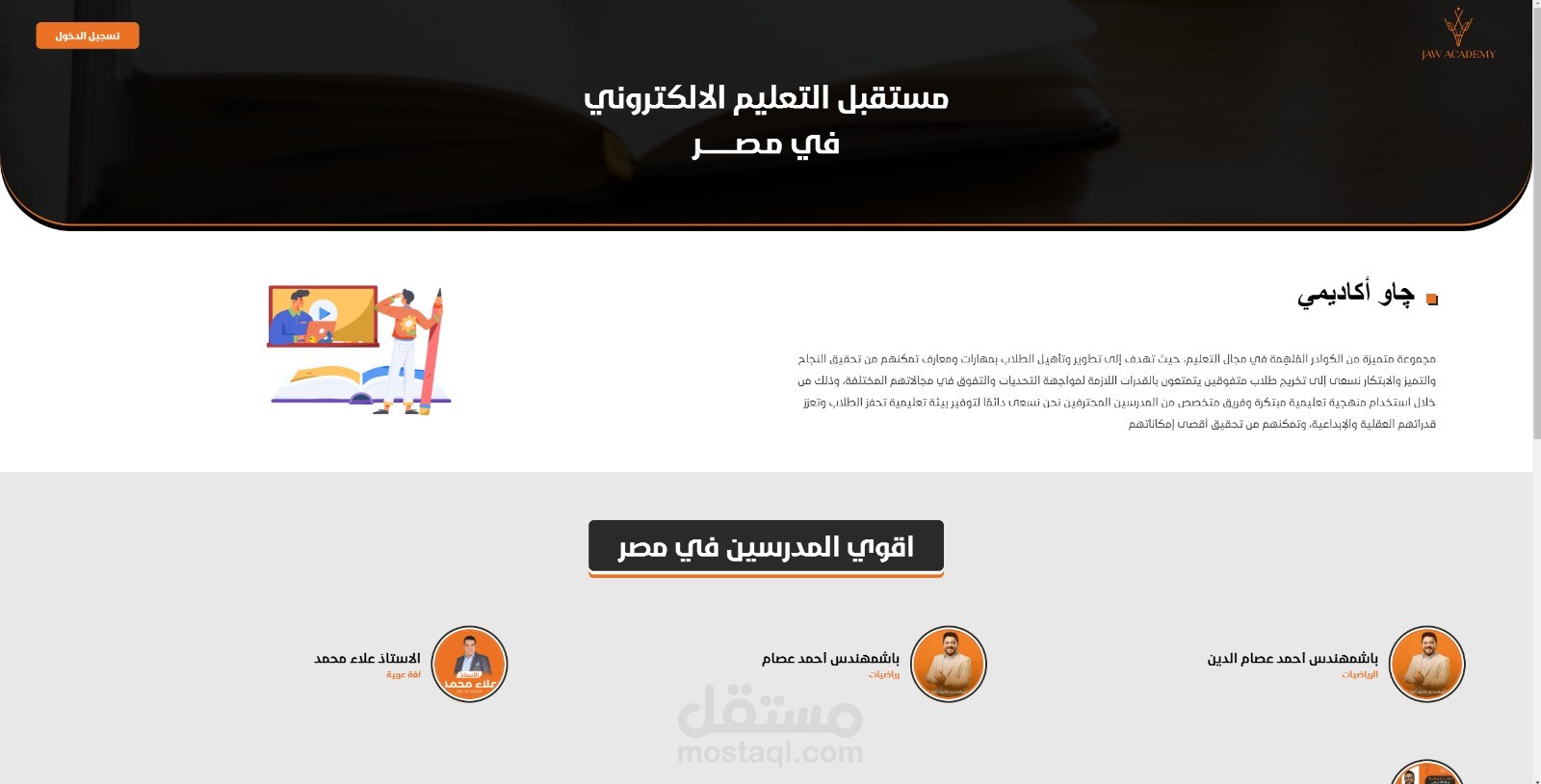 Jaw Academy هي منصة تعليمية اونلاين تحتوي علي مدرسين عمالقة مثل البشمهندس احمد عصام و تتحمل المنصة فوق ال 30 الف طالب يتصفحون المنصة يوميا و يشاهدون الفيديوهات و الشروحات.
