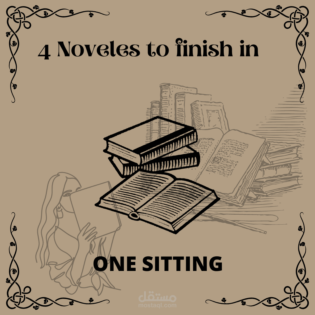 هذا المشروع عبارة عن منشور انستغرام لاحد الصفحات المهتمة بالادب الانجليزي, المنشور يقدم 4 اقتراحات لاهم الروايات التي يمكن للشخص انهاؤها بجلسة واحدة. تعديل canva