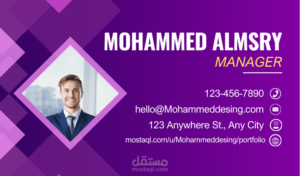 الترويج للعلامة التجارية: يمكن استخدام التصميم الخاص بالبزنس كارت لتعزيز العلامة التجارية ونشر رسالة محددة. يمكنك إضافة شعار الشركة، والألوان، والشعارات، والشعارات الخاصة بوسائل التواصل الاجتماعي على البطاقة لتعزيز هويتك التجارية.