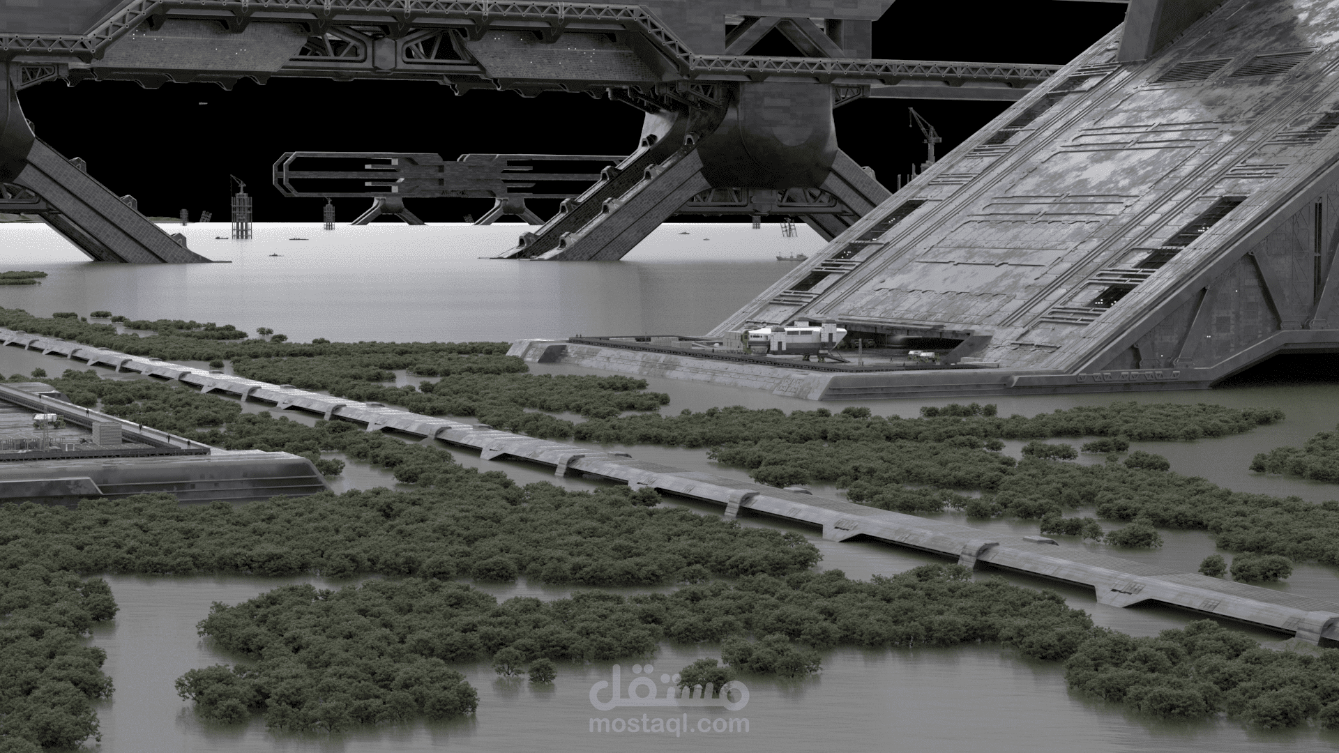 المرحبة الثانية اضاءة كل عنصر في المشهد بما يتناسب مع اضاءة السماء و الضوء المنعكس منها ليندمج المشهد مع السماء ويظهرو كصورة واحدة