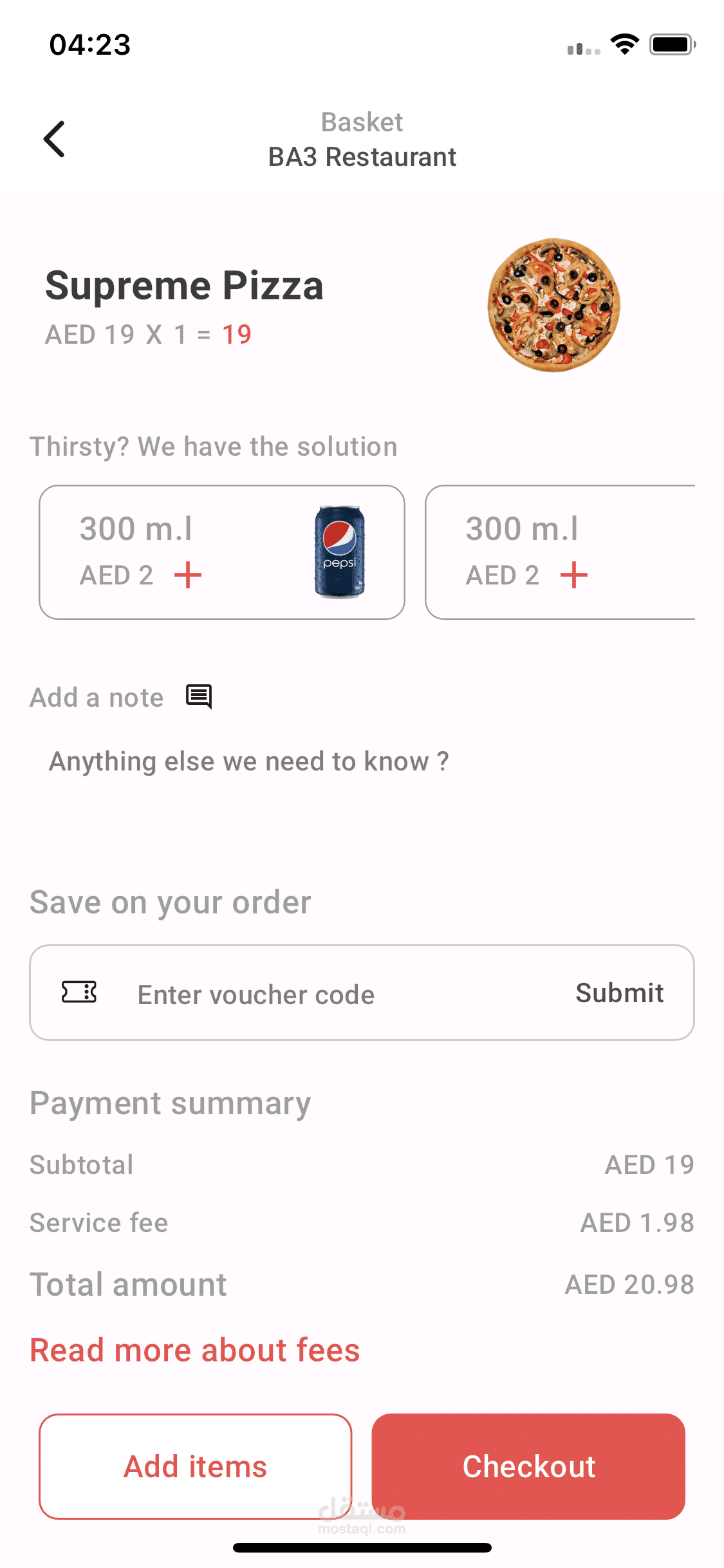 بعد اختيار المنتجات المرغوبة، يمكن للمستخدم إضافتها إلى سلة الطلب بنقرة بسيطة، ويتم عرض ملخص للطلبات في النهاية للتحقق منها قبل تأكيد الطلب.