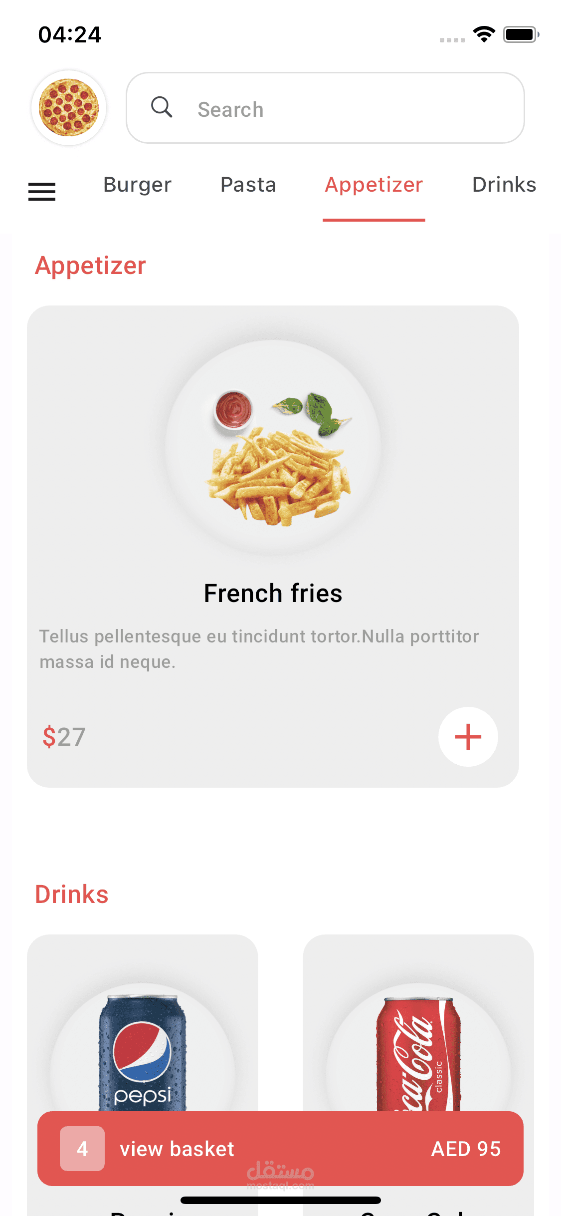 عند اختيار المنتج، يُظهر التطبيق قائمة بالأصناف المتاحة مع الصور والأسعار. وعند النقر على أحد المنتجات، يُظهر انيميشن جميل يُظهر عملية إعداد الوجبة بشكل مثير للاهتمام، مما يزيد من تجربة المستخدم.
