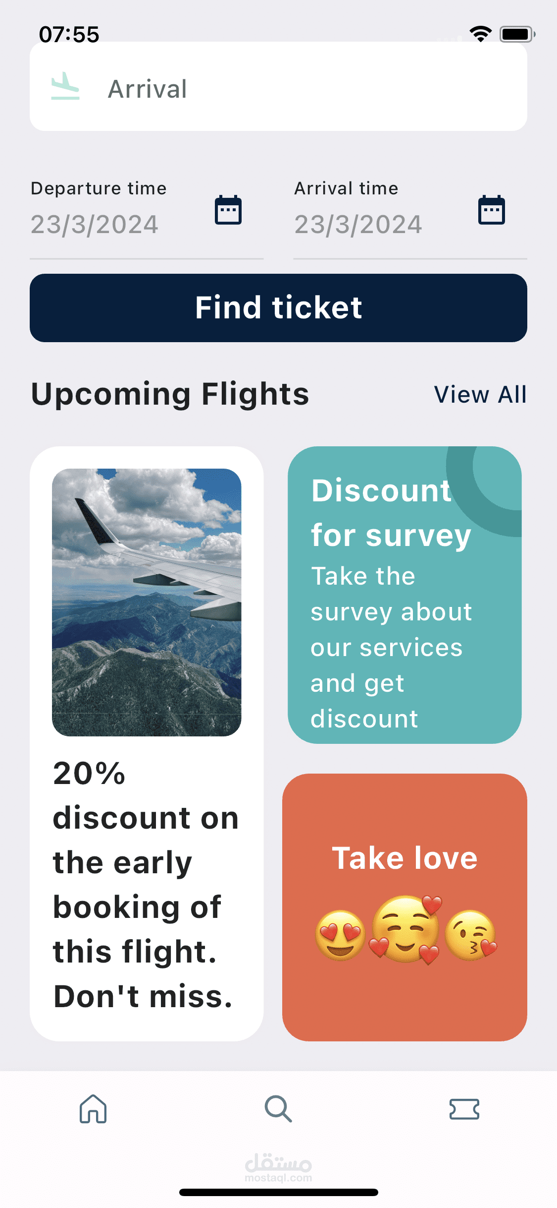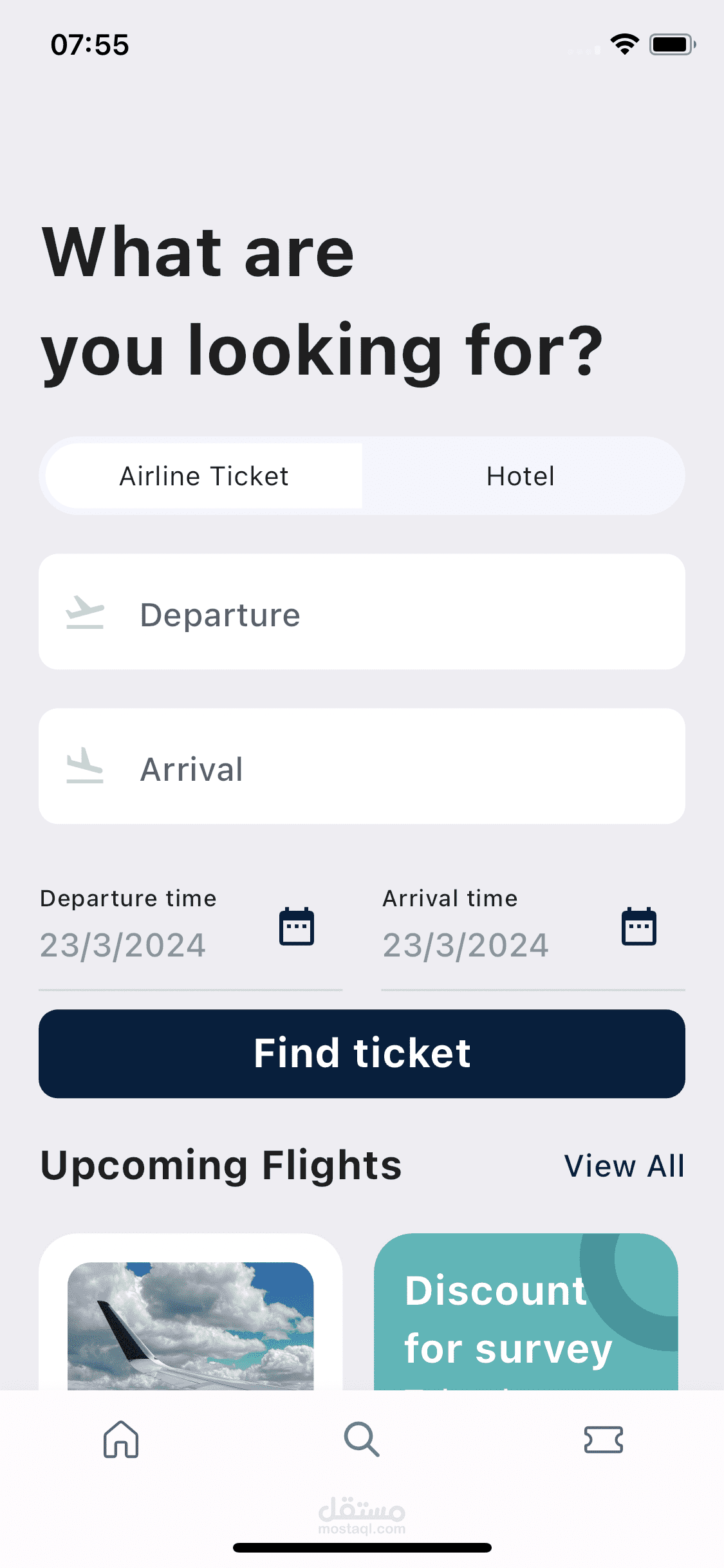 يتيح التطبيق للمستخدمين البحث عن رحلات طيران متاحة من مجموعة متنوعة من شركات الطيران وعلى مختلف الوجهات.