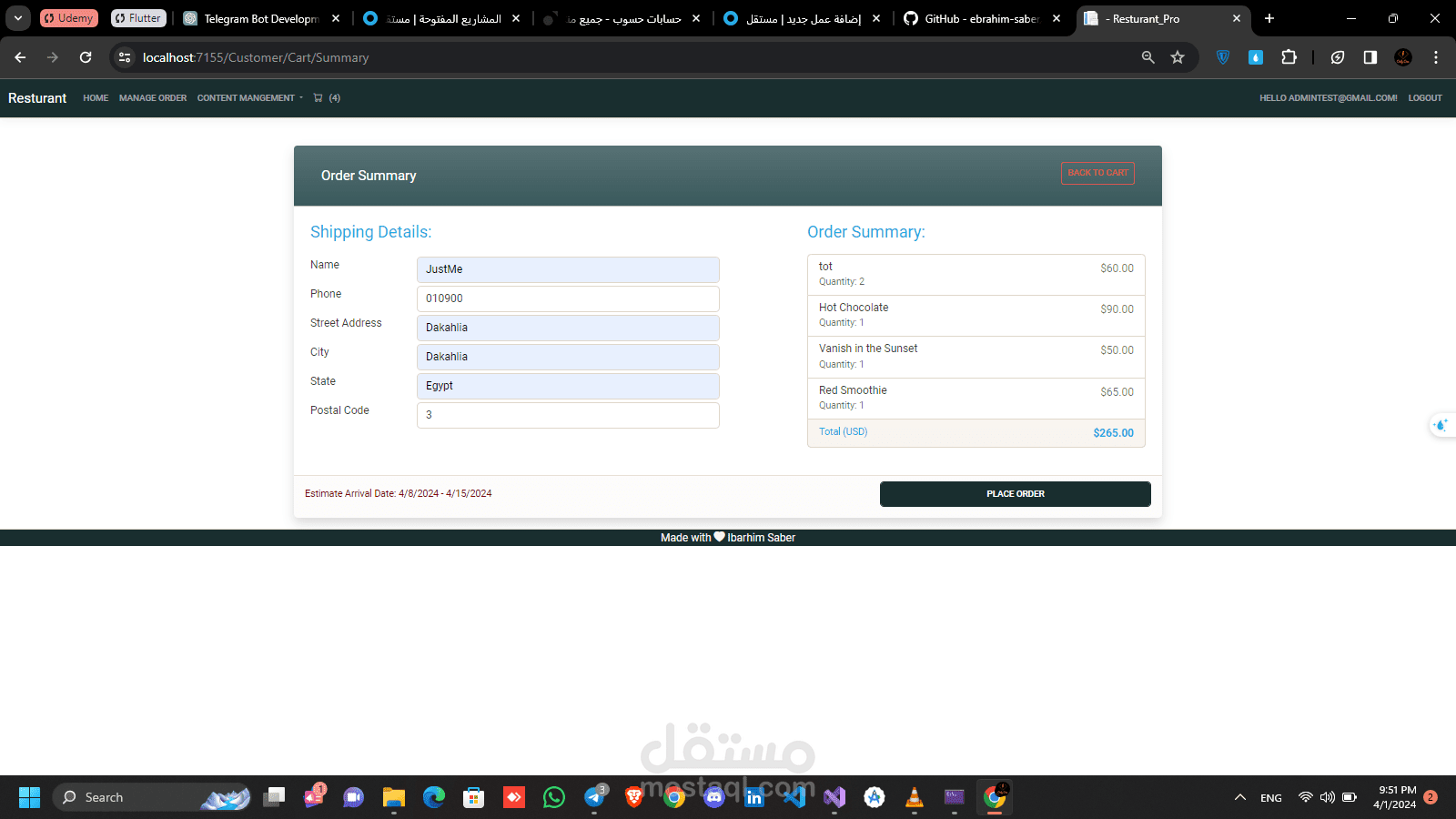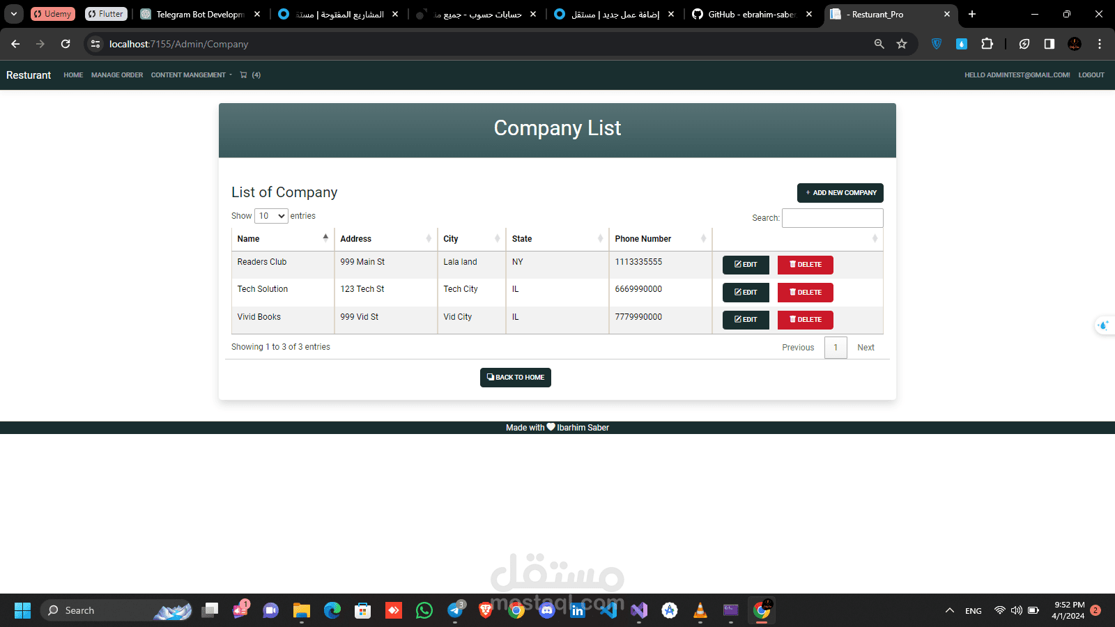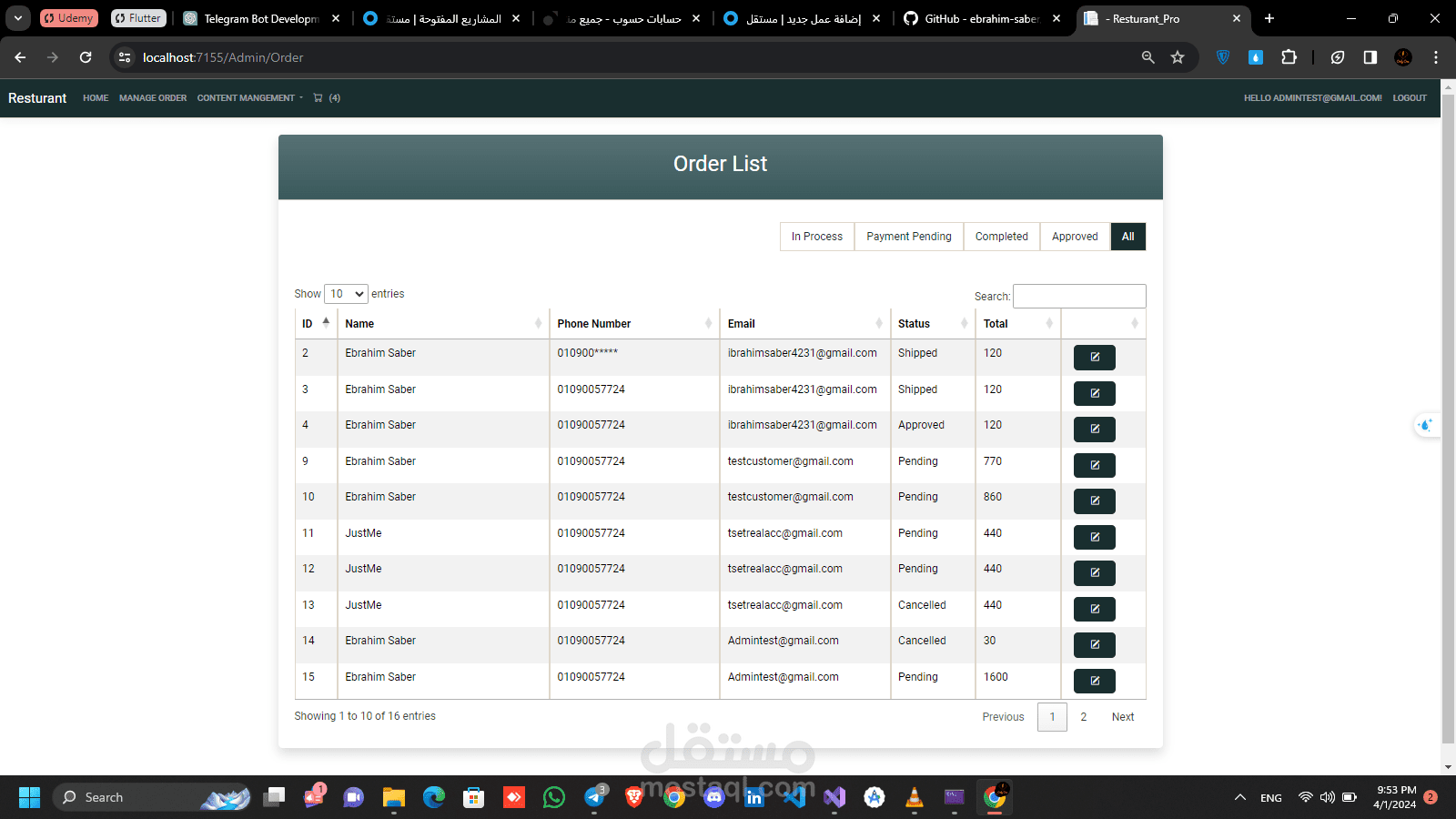 4- يوجد صفحه لادارة الشكرات الخاصه بعمليات التوصيل