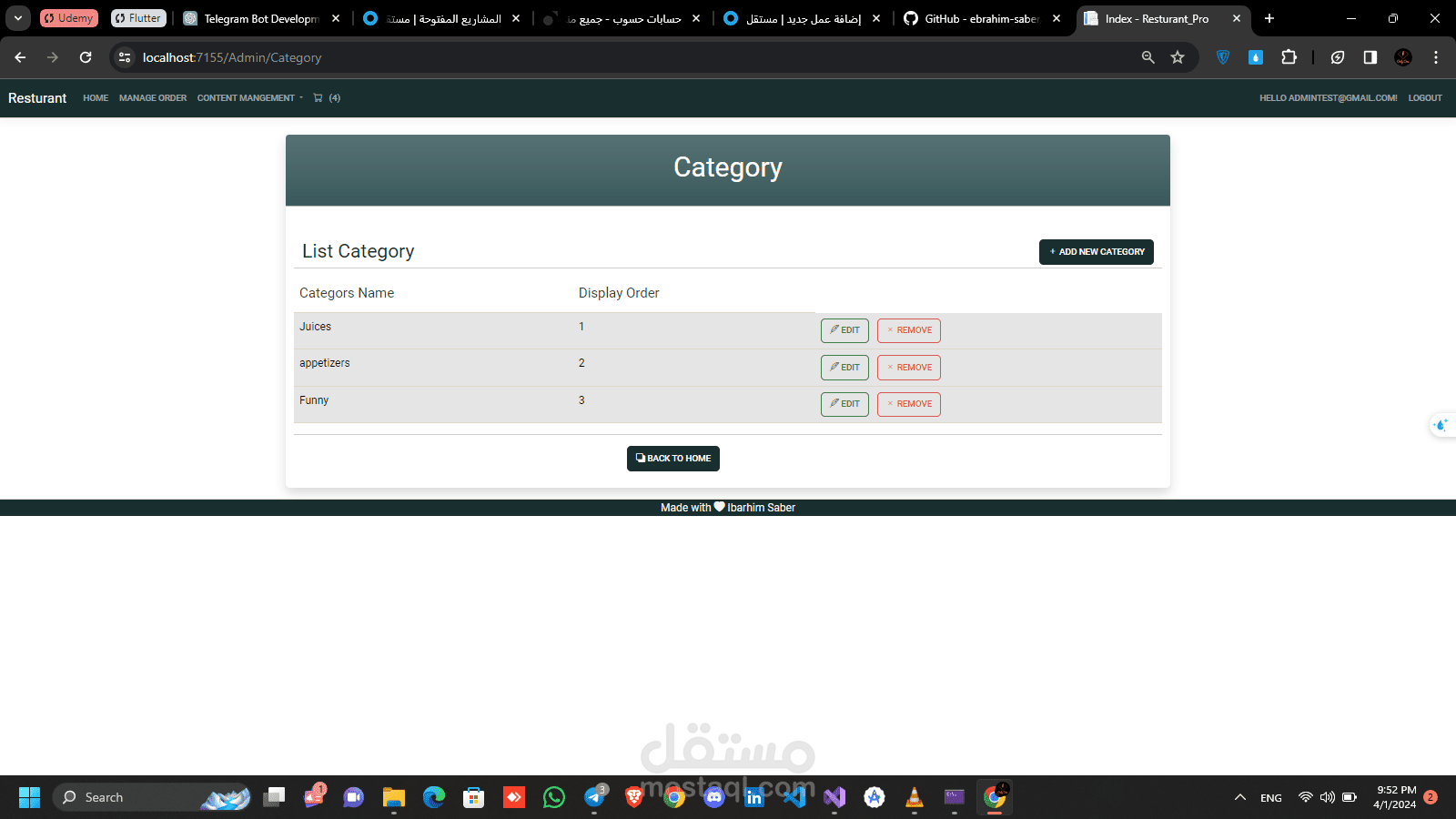 1- يوجد صفحه للاقسام وصفحه لتعديل الاقسام و صفحه لحذف الاقسام