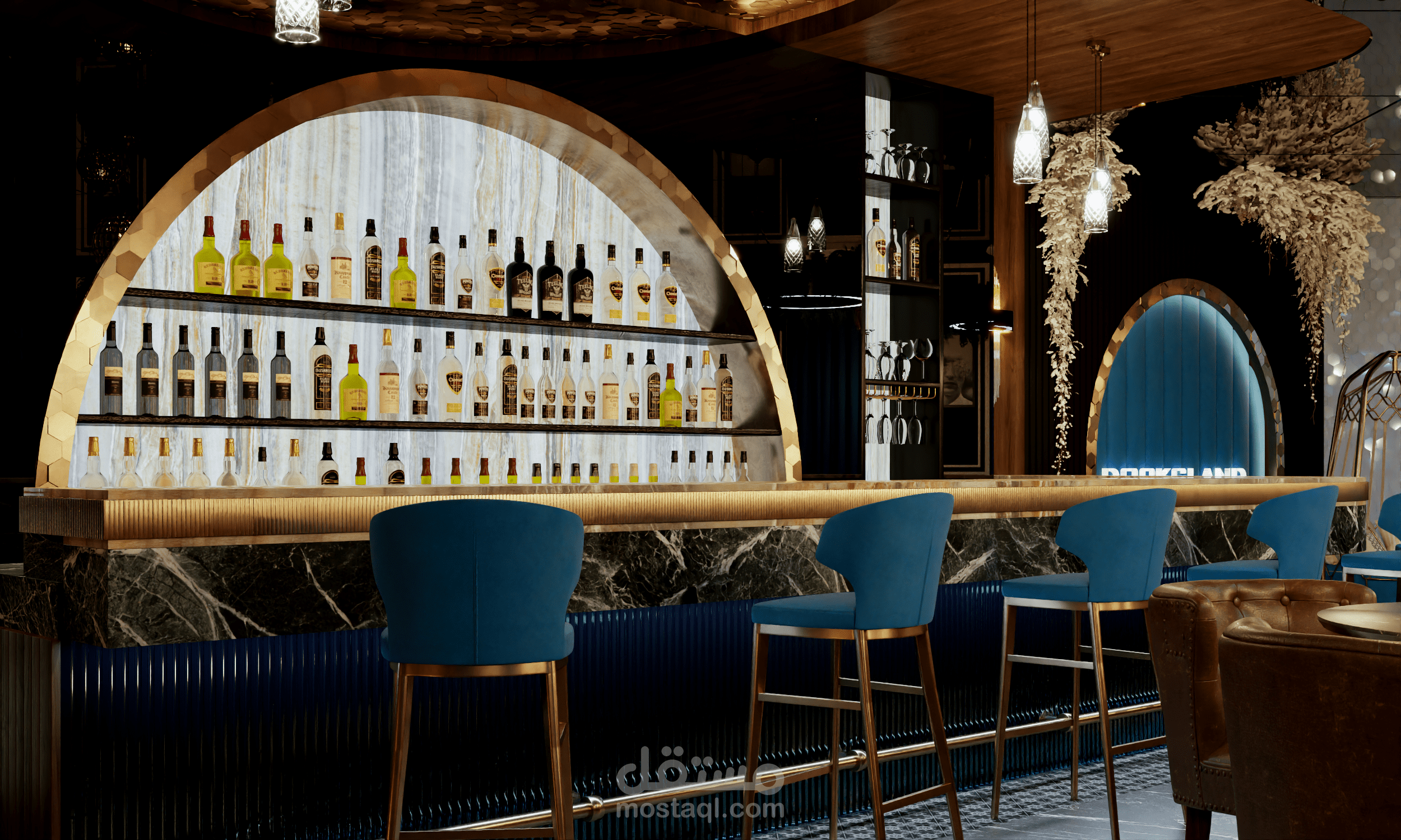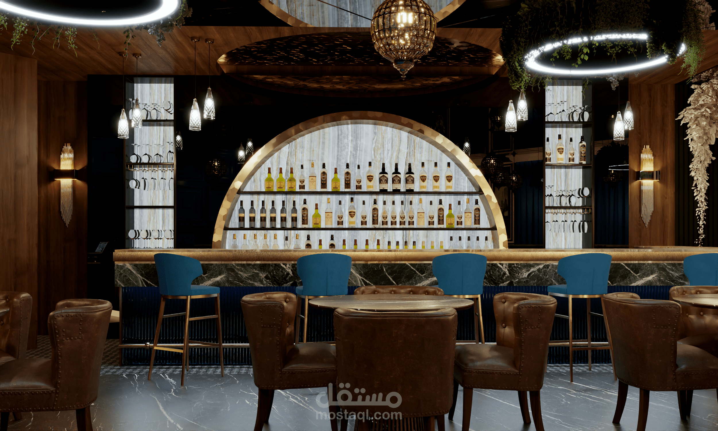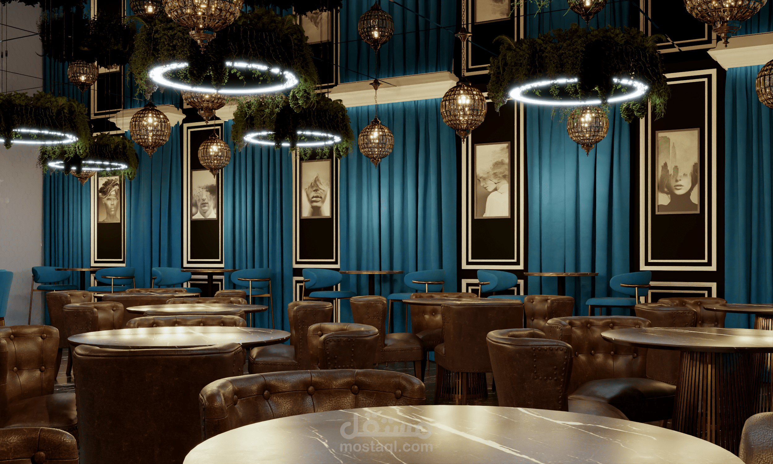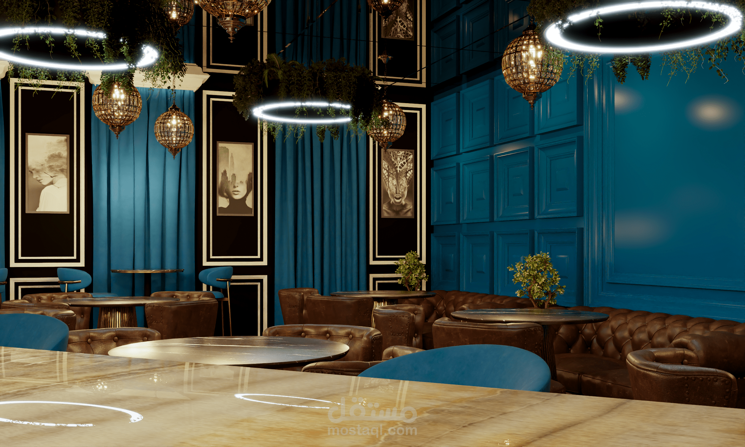 تصميم لمطعم و مقهى في مدينة دبي.. في هذا التصميم تم استعمال نمط حديث معاصر يتماشى من مدينة دبي و مع افكار و رؤية العميل