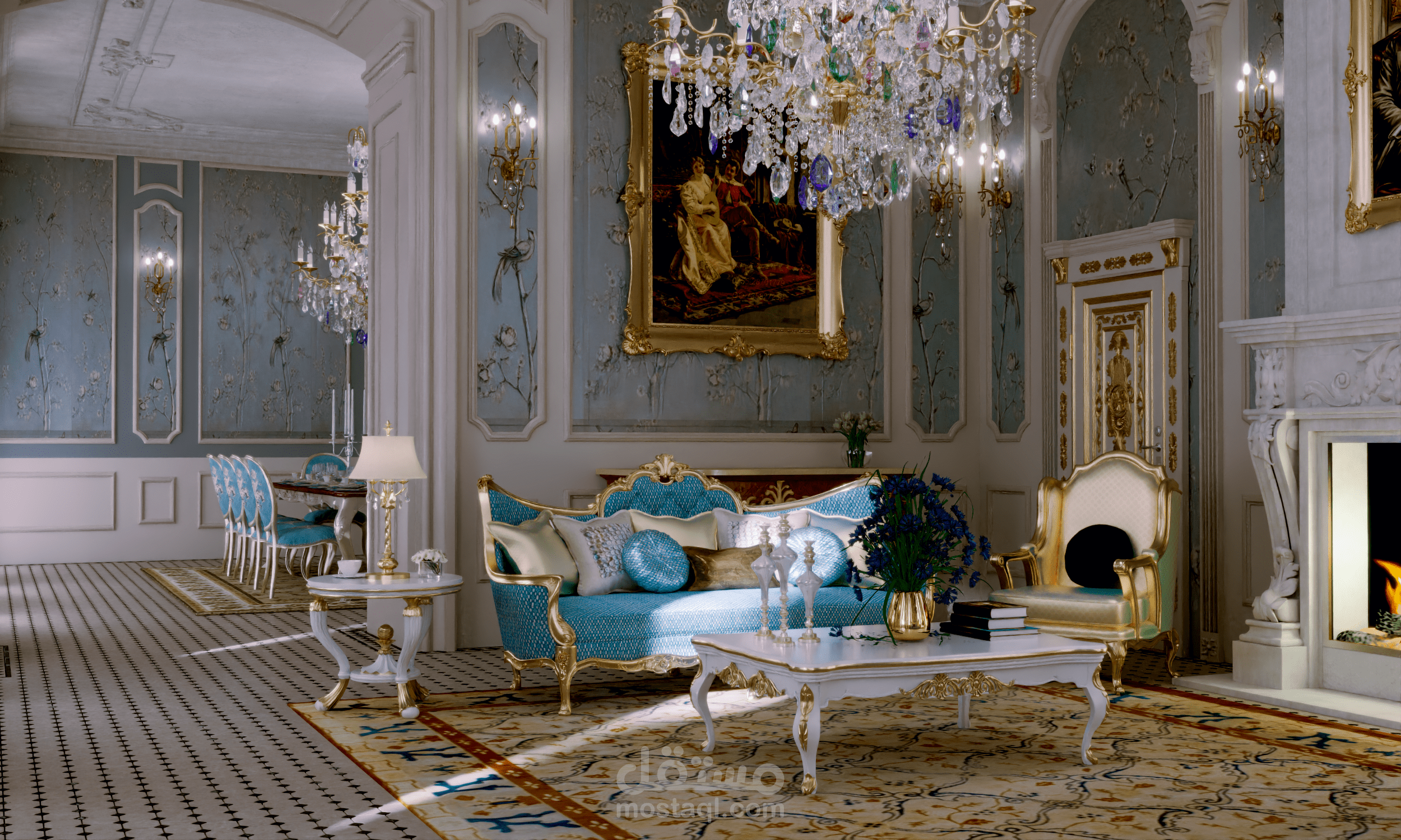 تصميم على النمط الفيكتوري.. حيث تم اختيار الالوان و إكساءات الجدران و الارضيات و المفروشات بطريقة دقيقة بحيث تتناسب مع الحقبة الزمنية و النمط الفيكتوري