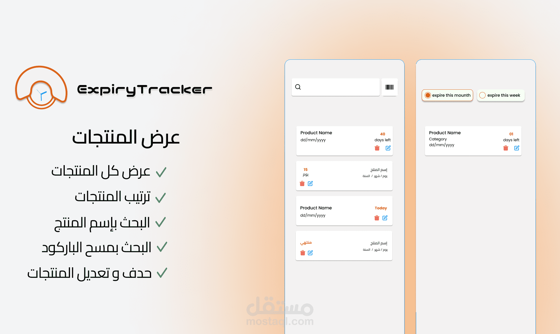 يتيح التطبيق عرض المنتجات المضافة حسب تاريخ انتهاء الصلاحية الأقرب، مما يساعد في تنظيم المخزون بشكل فعال.
