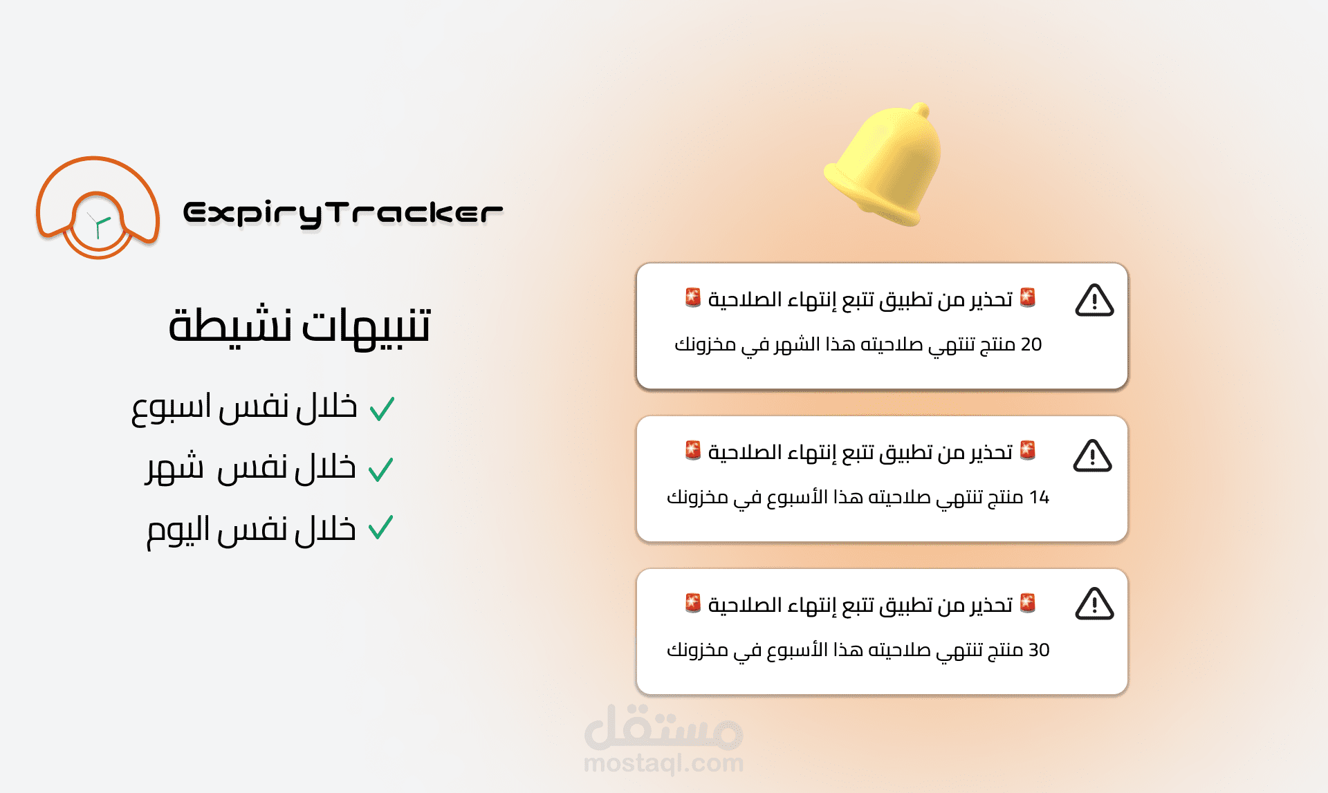 يقدم التطبيق تنبيهات متعددة للمستخدمين قبل انتهاء صلاحية المنتجات، حيث يمكن تخصيص تلك التنبيهات لتصل قبل شهر، أسبوع، ويوم من تاريخ انتهاء الصلاحية.