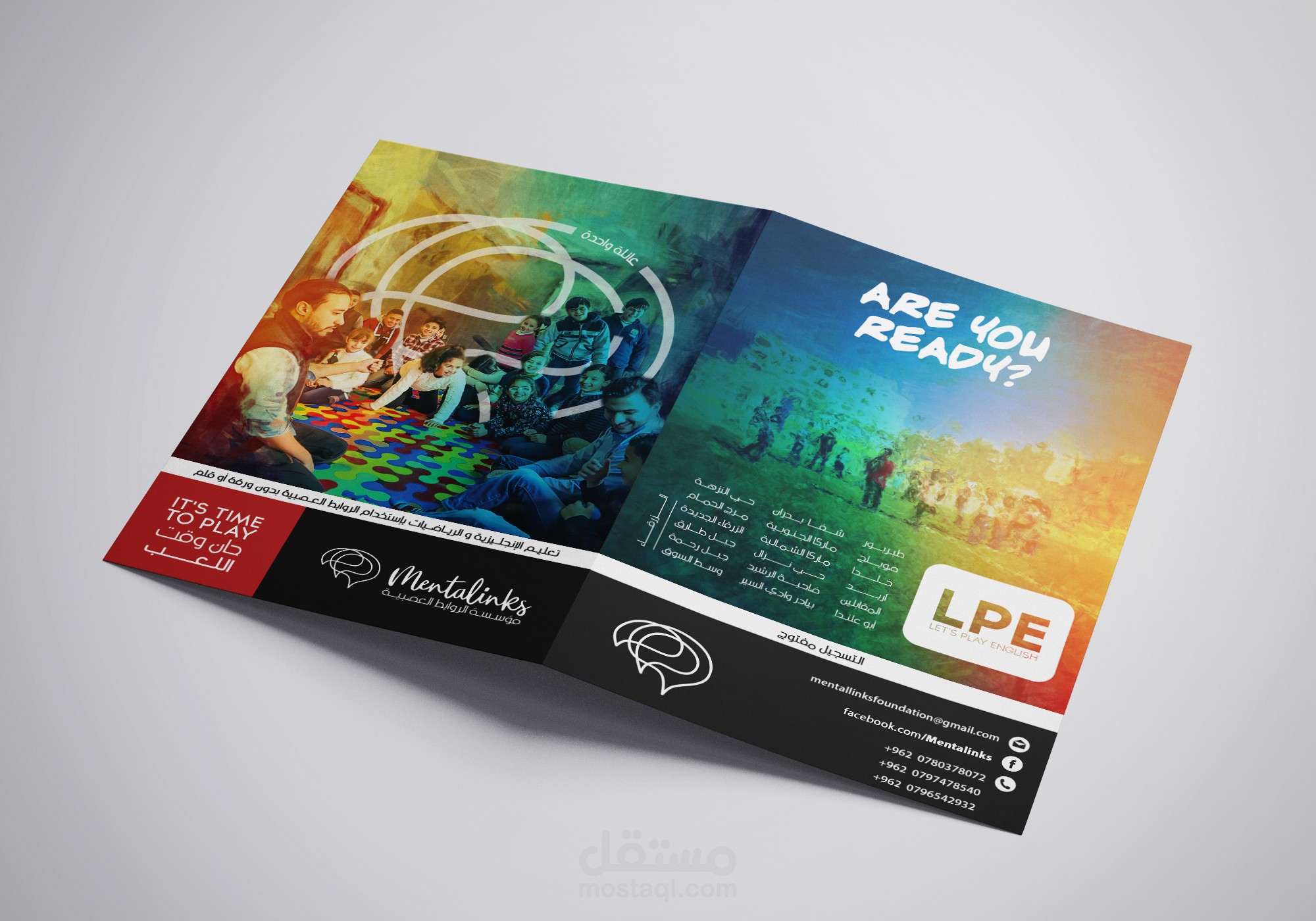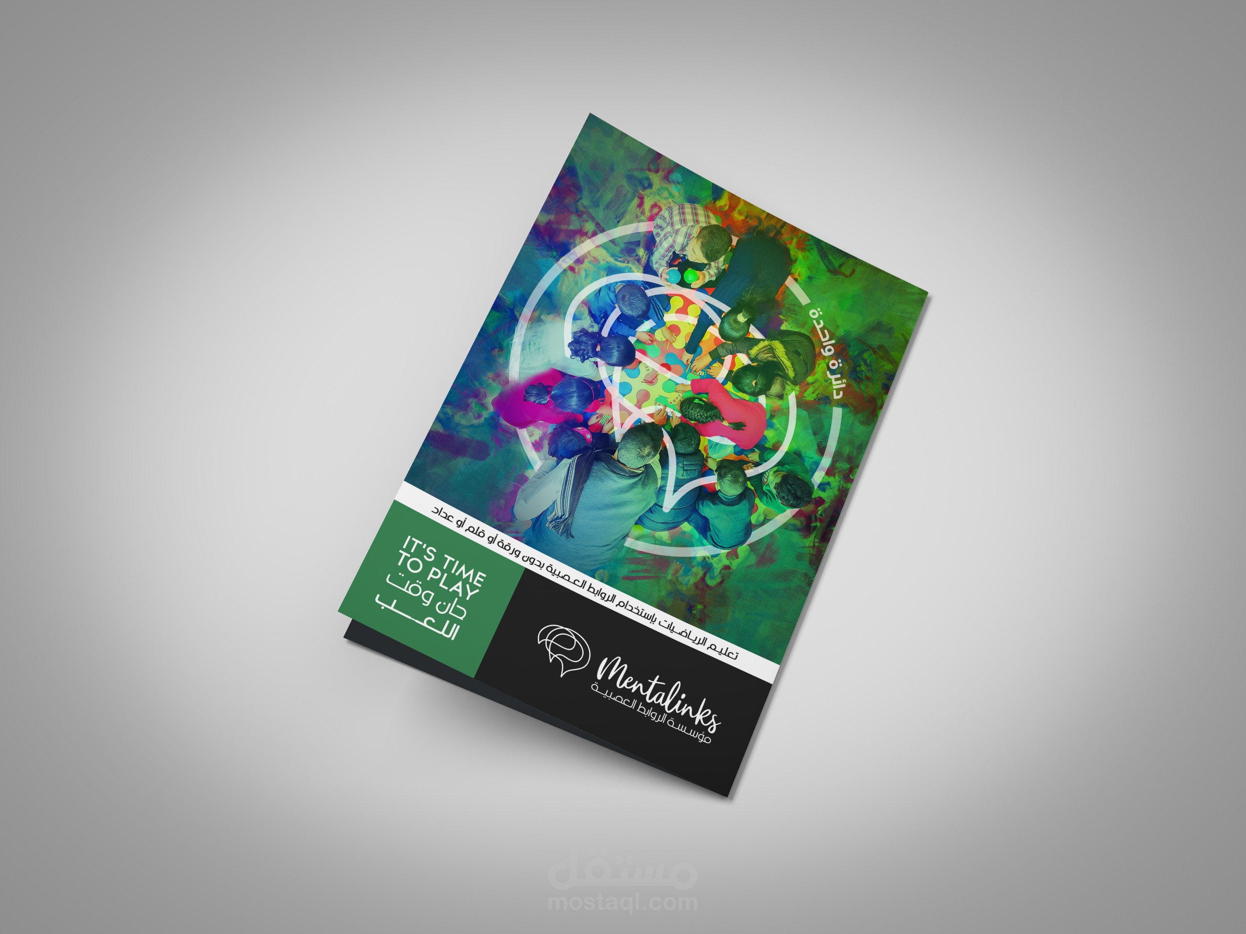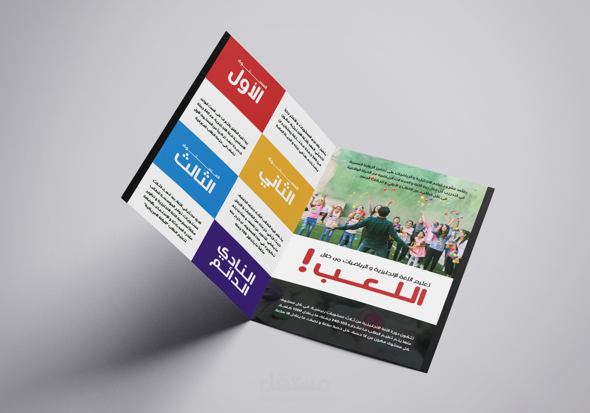 تصميم بروشور لمؤسسة الروابط العصبية لتعليم الأطفال اللغة الإنجليزية عن طريق اللعب
