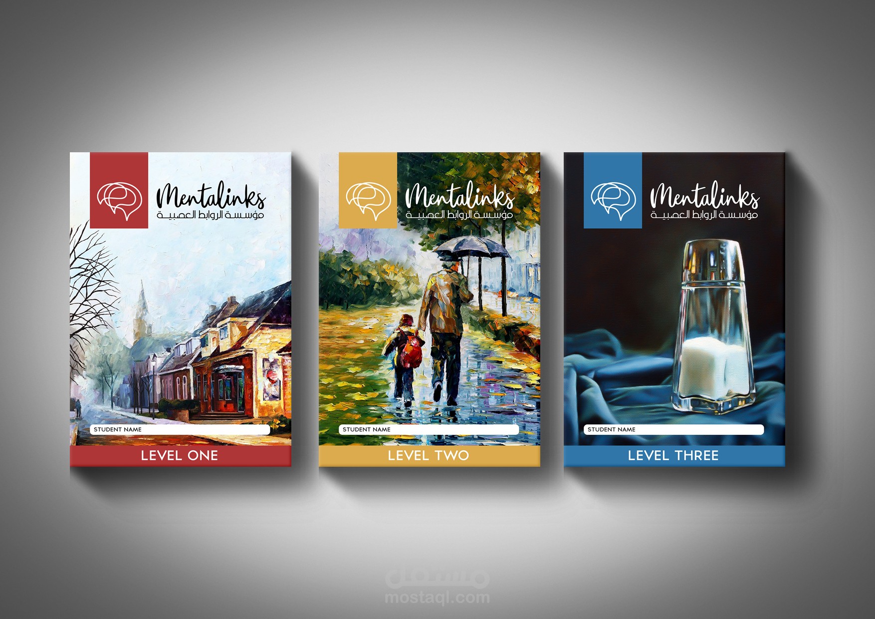 تصميم أغلفة المناهج لمؤسسة الروابط العصبية لتعليم اللغة الإنجليزية للأطفال عن طريق اللعب