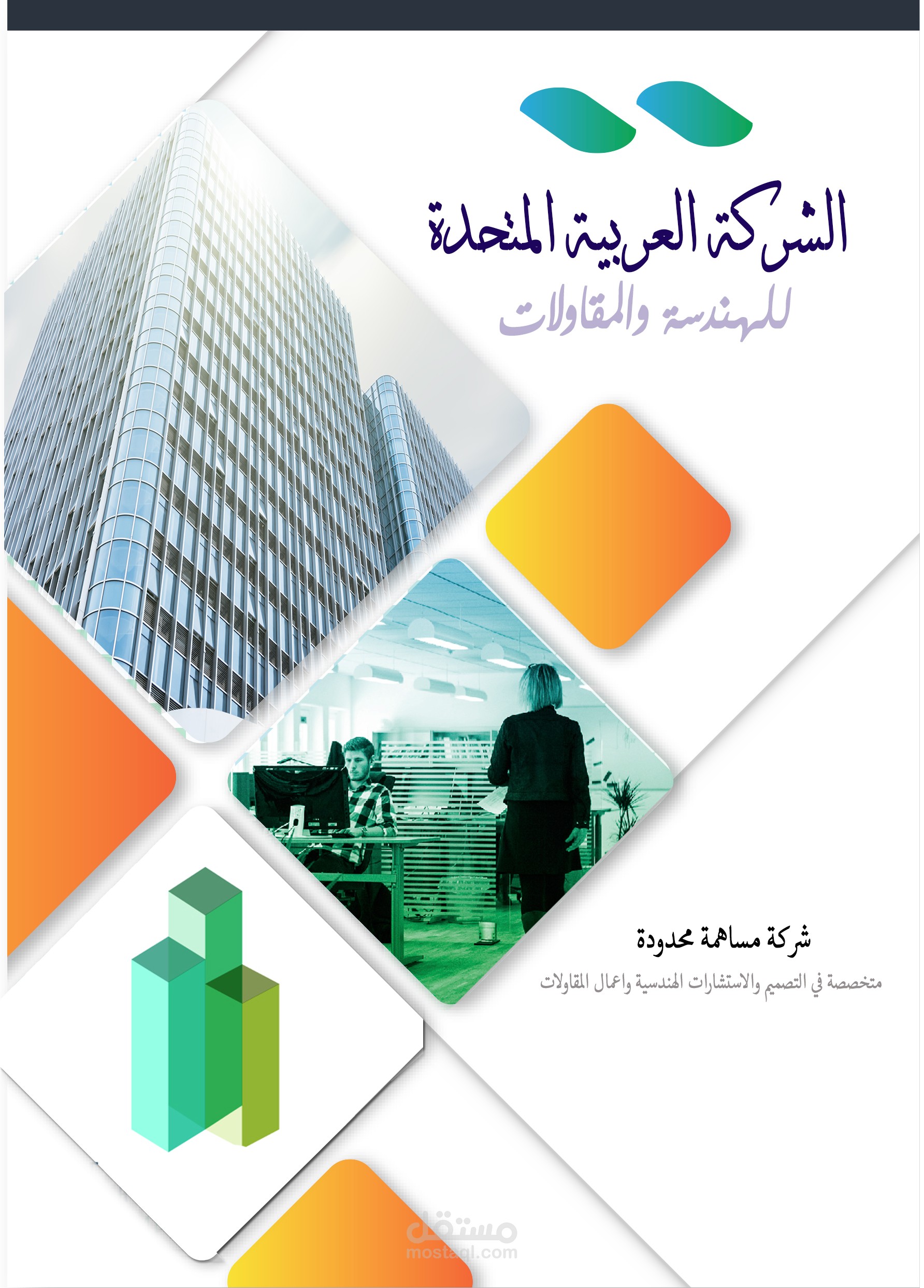 بوستر دعائي لشركة يحتوي اسم الشركة وصور وعناوين