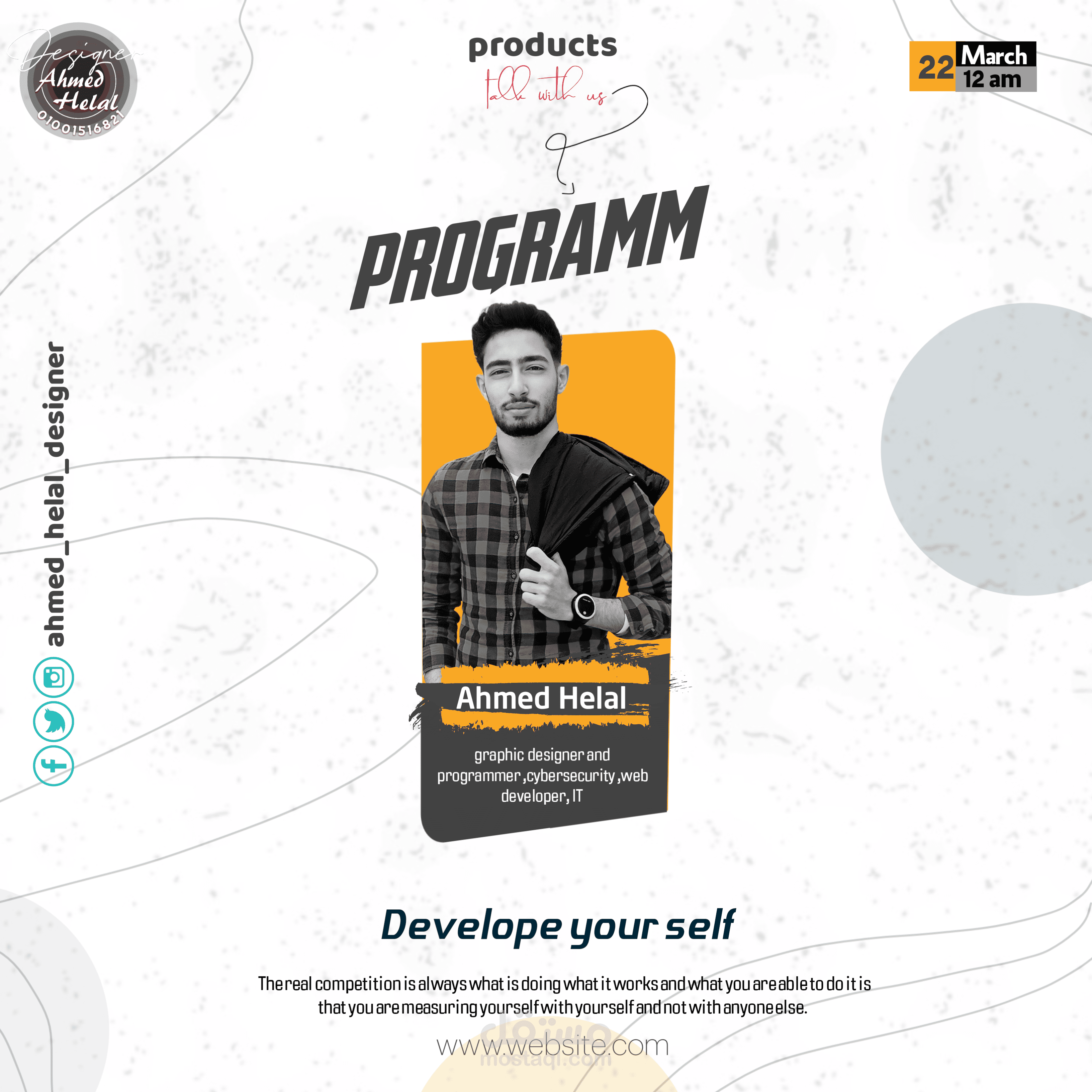 بعض من تصاميم مختلفة لدعاية افراح و و اعلان لمدرسين و اطباء و صالات رياضيه و اثاث و برودكاست , يمكنني تصميم لك اي تصمم تريده سواء لمكان عملك او الخدمة التي تقدمها او دعاية لحفل زفاف او رحلات و الكثير من الخدمات الاخري بطريقه احترافيه و مميزه تجذب الانتباه فقط تواصل معي و سنقدم لك افضل ما لدينا بصيغه png, jpg ,pdf و بأعلي جوده ممكنه ولا تنسي السؤال عن الباقات و العروض المستمره