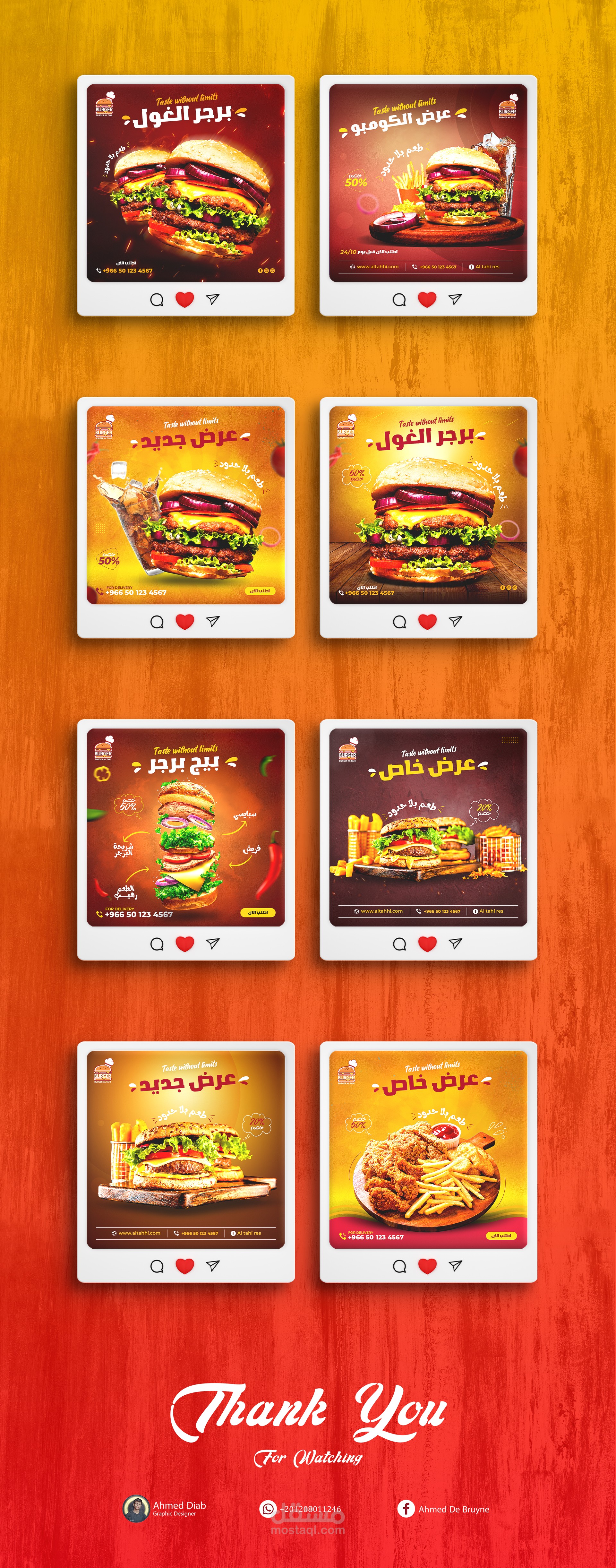 تهدف هذه التصميمات إلى توصيل رسالة واضحة وهي أن المطعم يقدم برجرًا كبيرًا ولذيذًا بأسعار مخفضة. يتم التركيز على الجانب الحسي لتجربة تناول الطعام من خلال استخدام الألوان الزاهية والصور الشهية. كما يتم التأكيد على العروض والخصومات لجذب العملاء وتشجيعهم على تجربة المنتج.