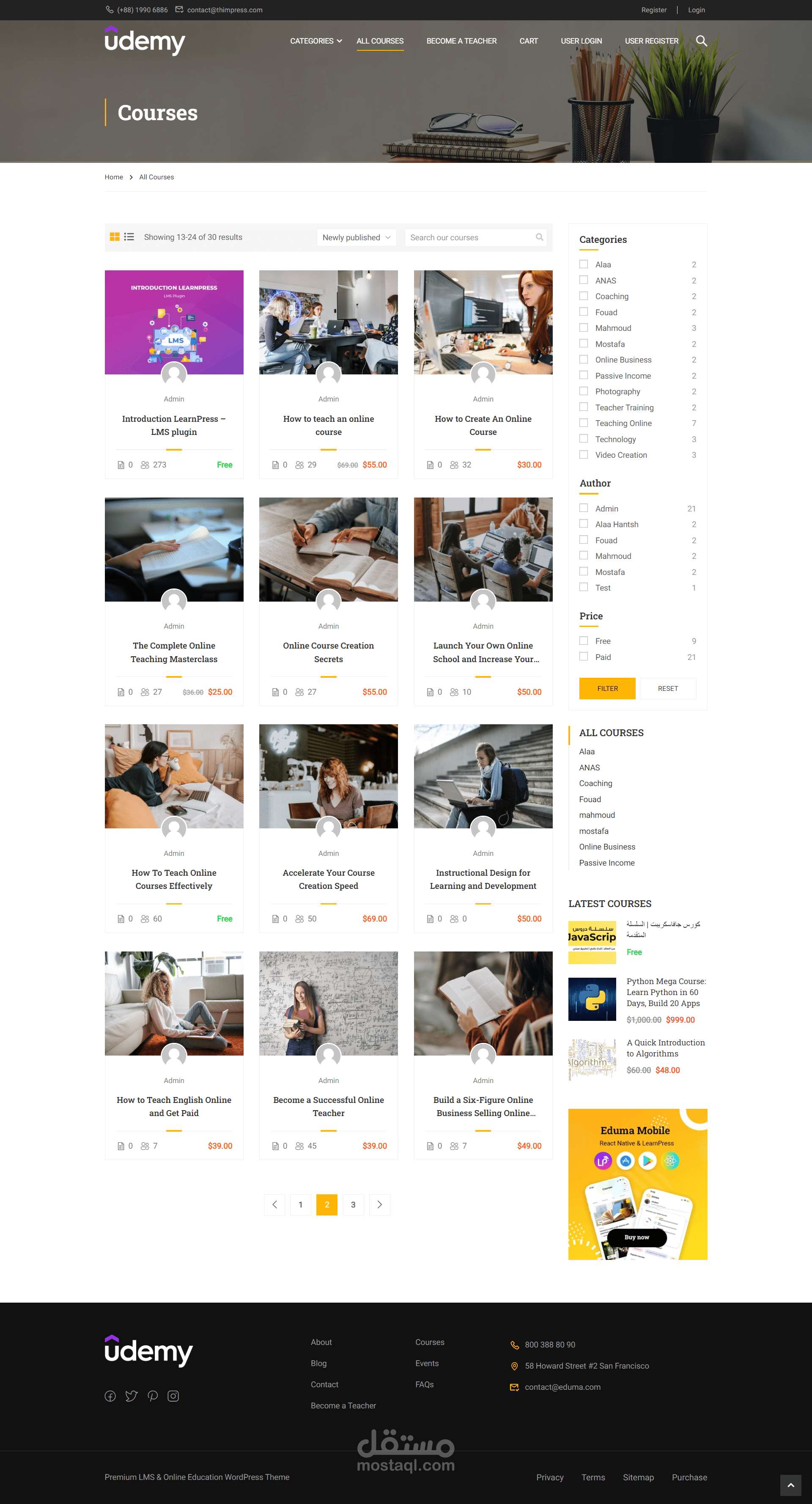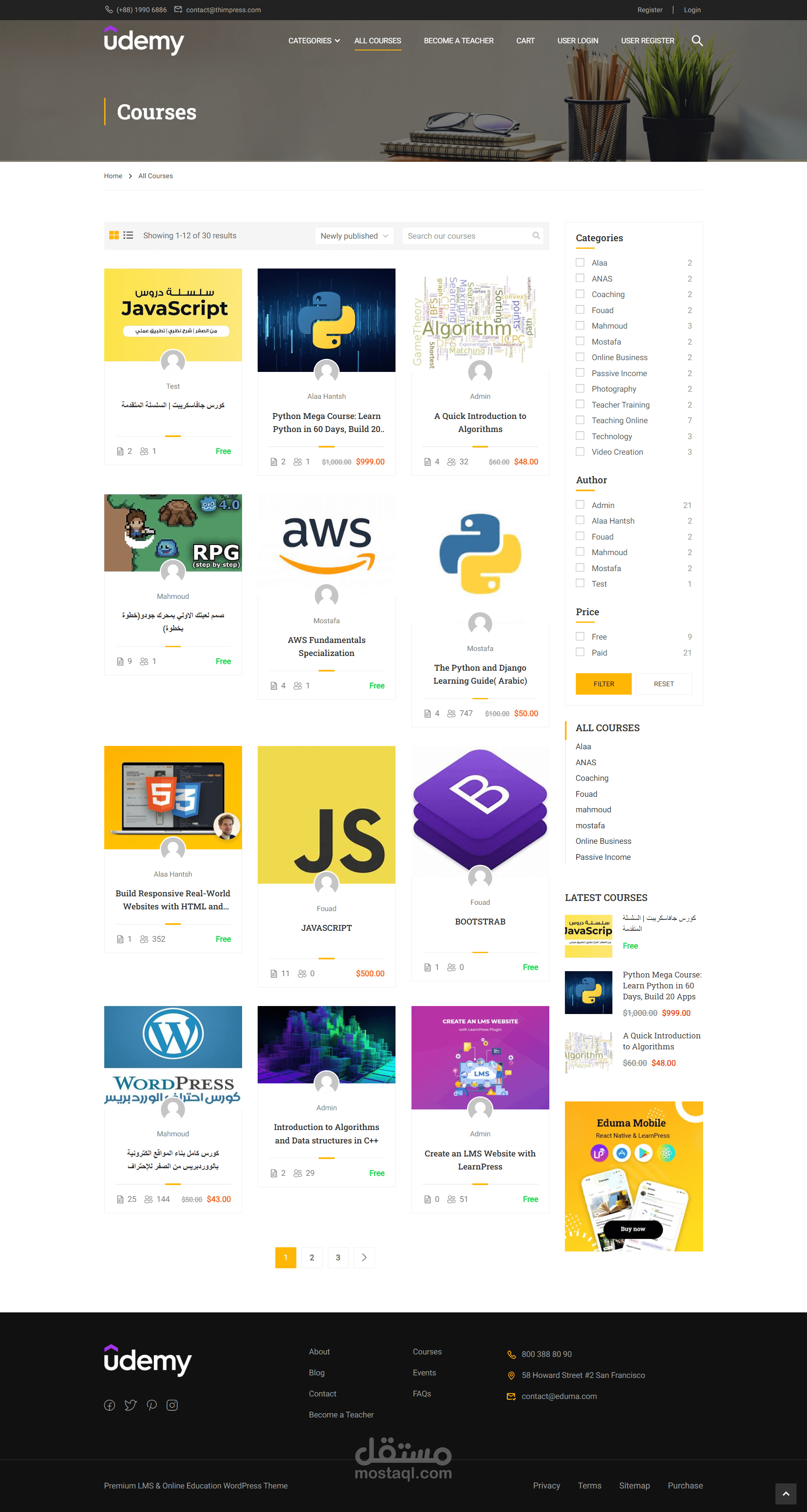 This Education WordPress Web Site It, offers an online learning and teaching platform for students to take courses in various fields which include design, photography, IT and software, business, personal development and marketing