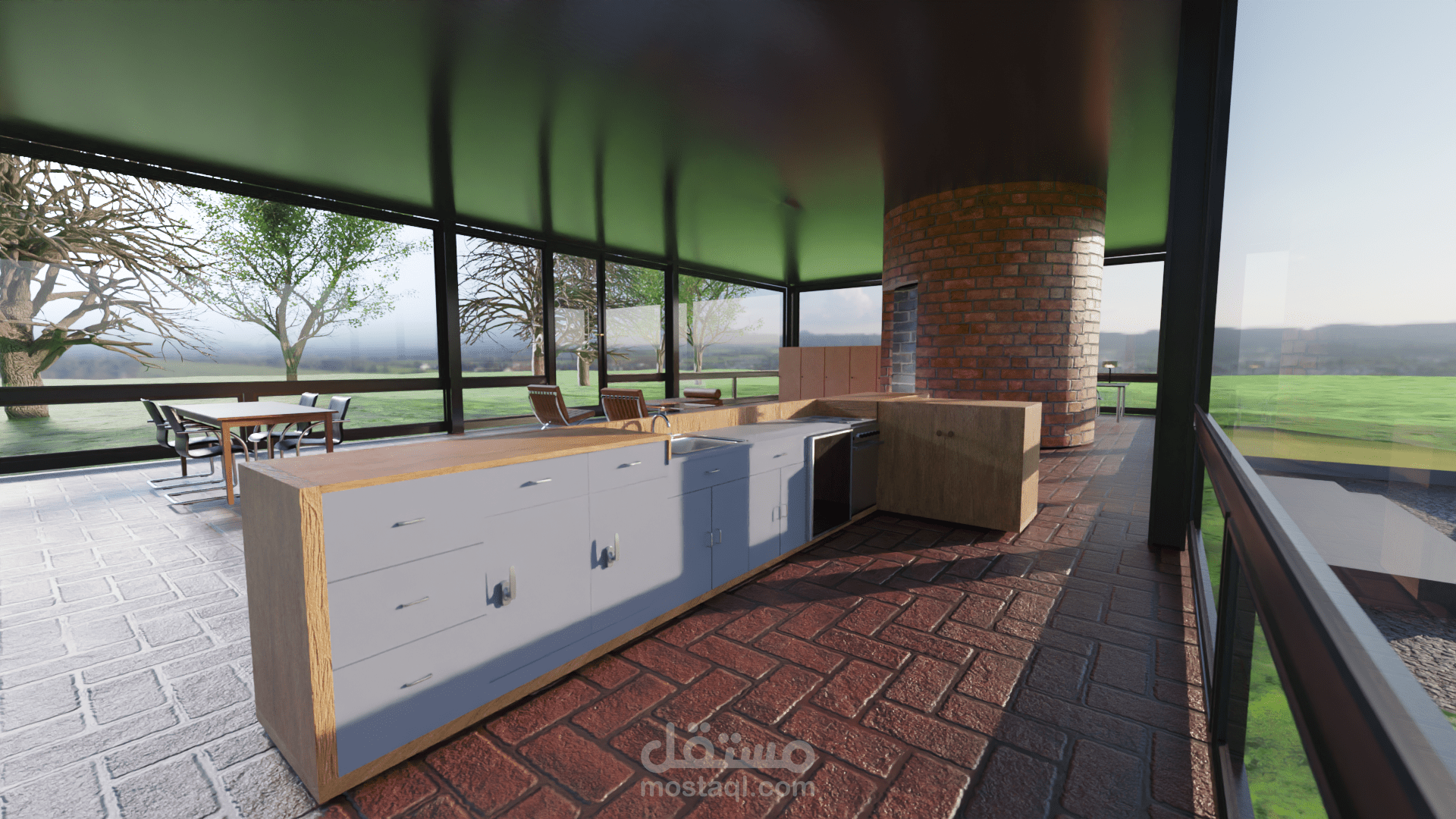 اظهار معماري ل GLASS HOUSE من تصميم PHILIP JOHNSON