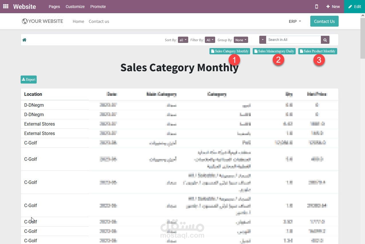 The screenshots shows an example and part of my module portal qery report in Odoo (portal)