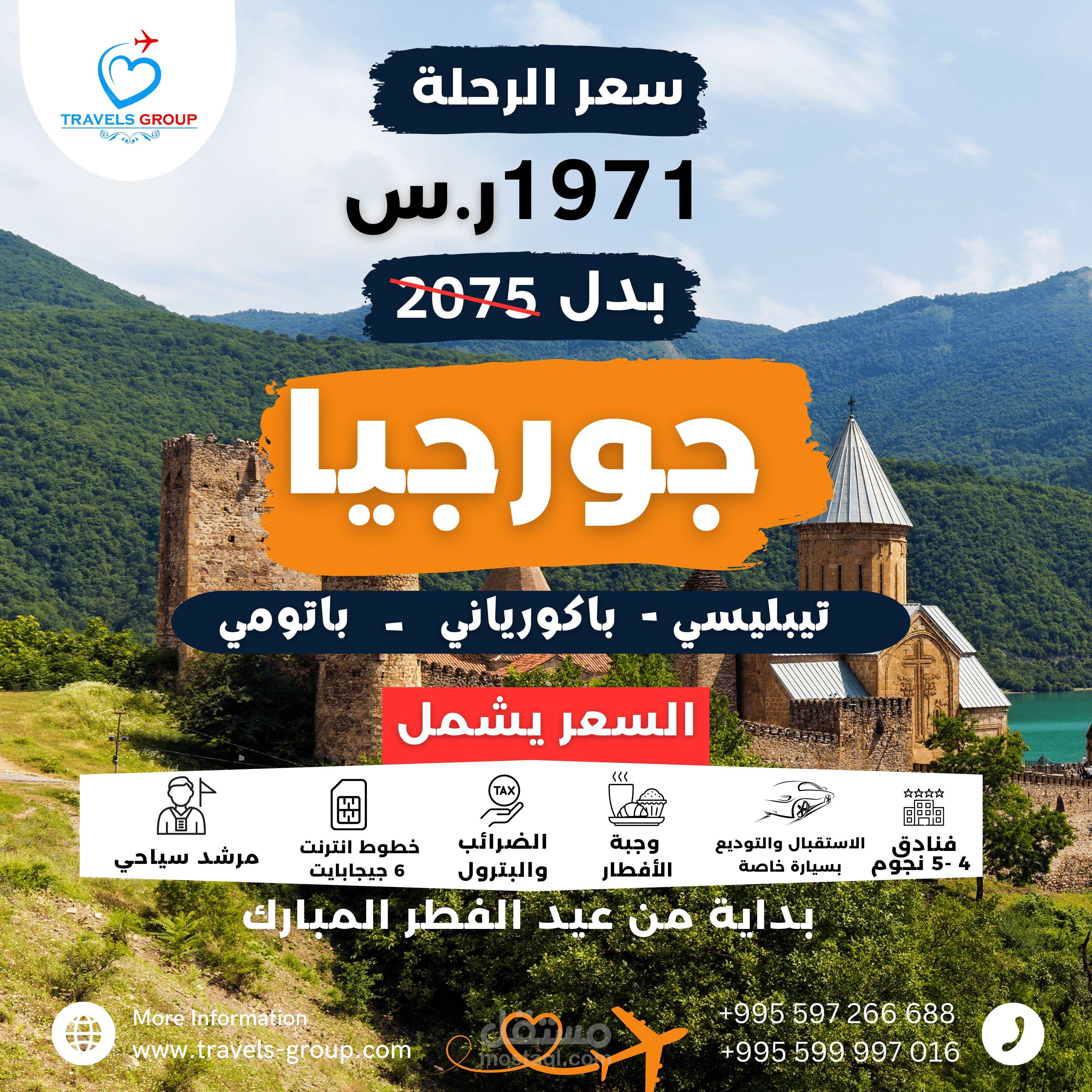 تصميمات لعروض بمناسبة عيد الفطر لشركة سياحة