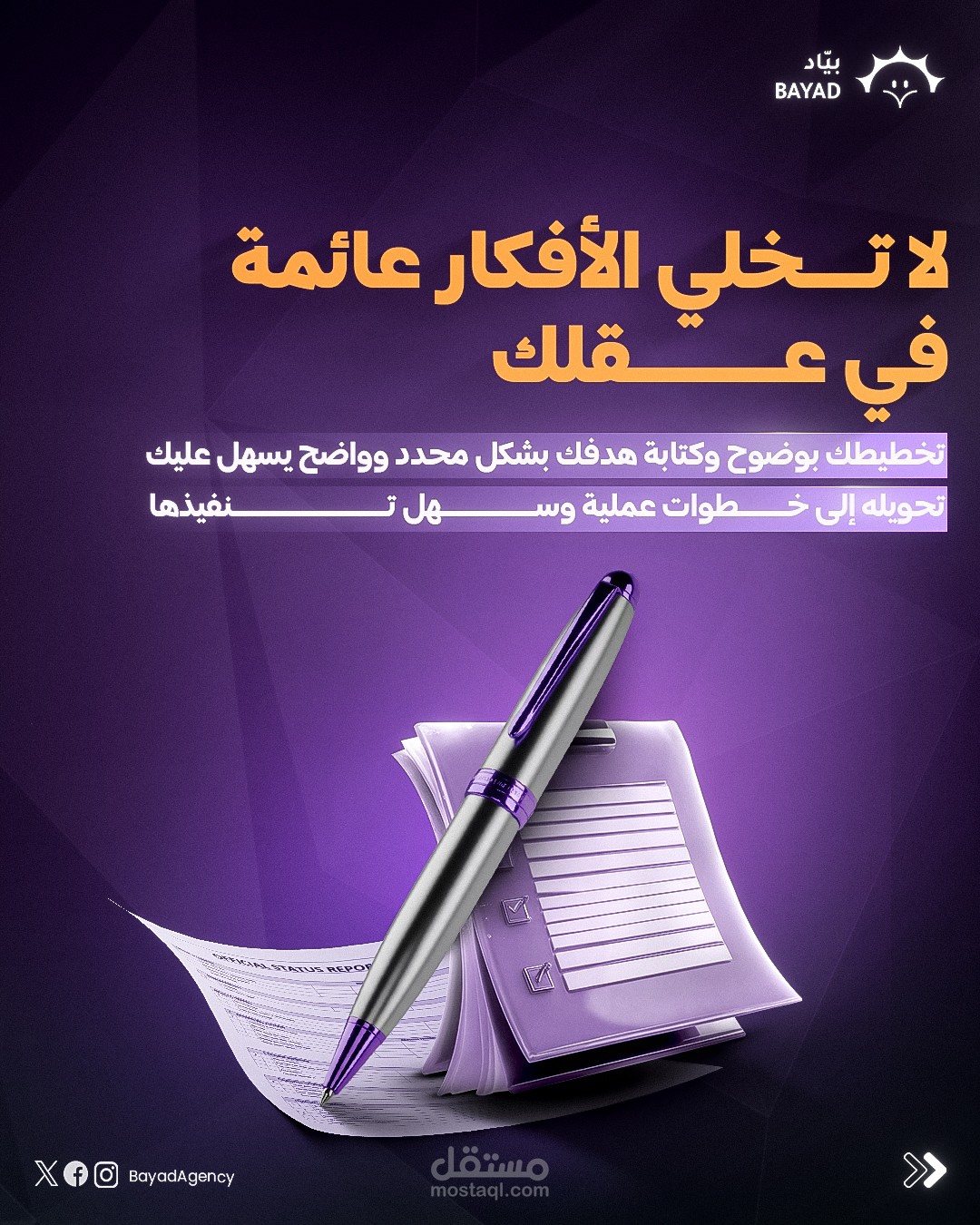 مشروعي هو تصميم محتوى سوشيال ميديا مبتكر وجذاب يساعد الشركات على تعزيز حضورها الرقمي.