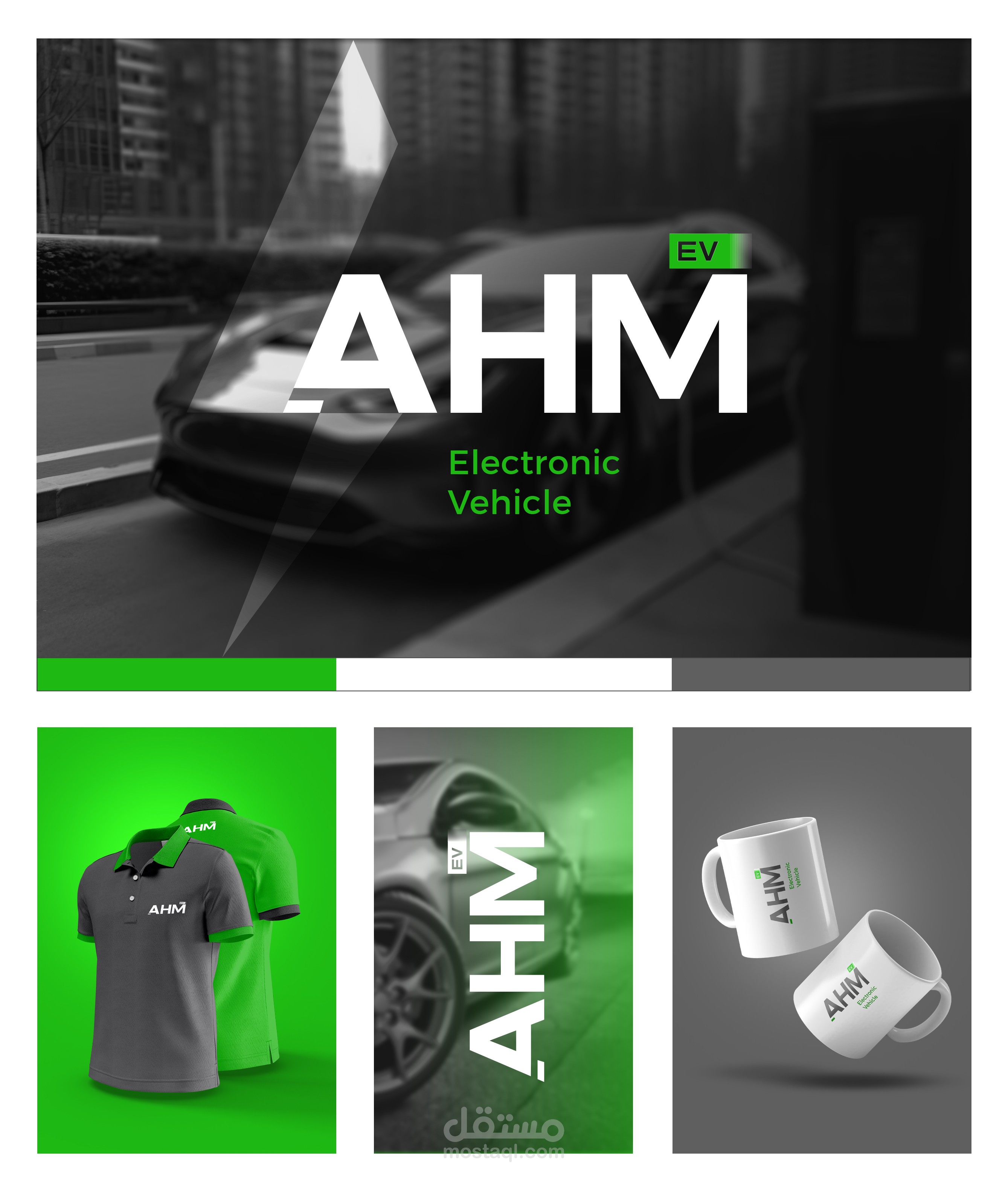 AHM-EV logo for electric cars. The logo was