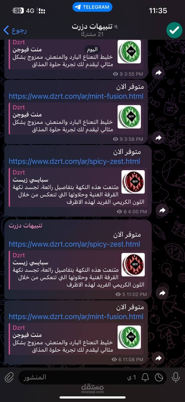 بوت لموقع دزرت عن طريق ارسال رسالة في التلجرام اما في قناه او يرسل رسالة لمجموعة معينة من المستخدمين او رسالة لشخص بعينة عند توفر المنتاجات في متجر dzrt