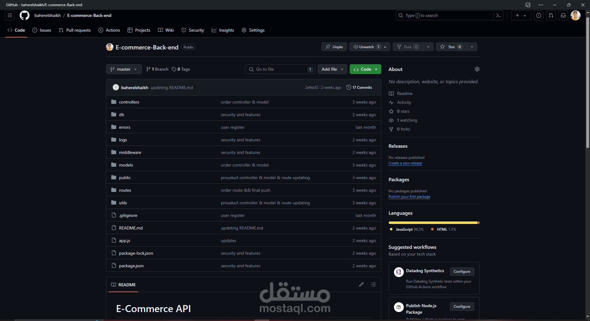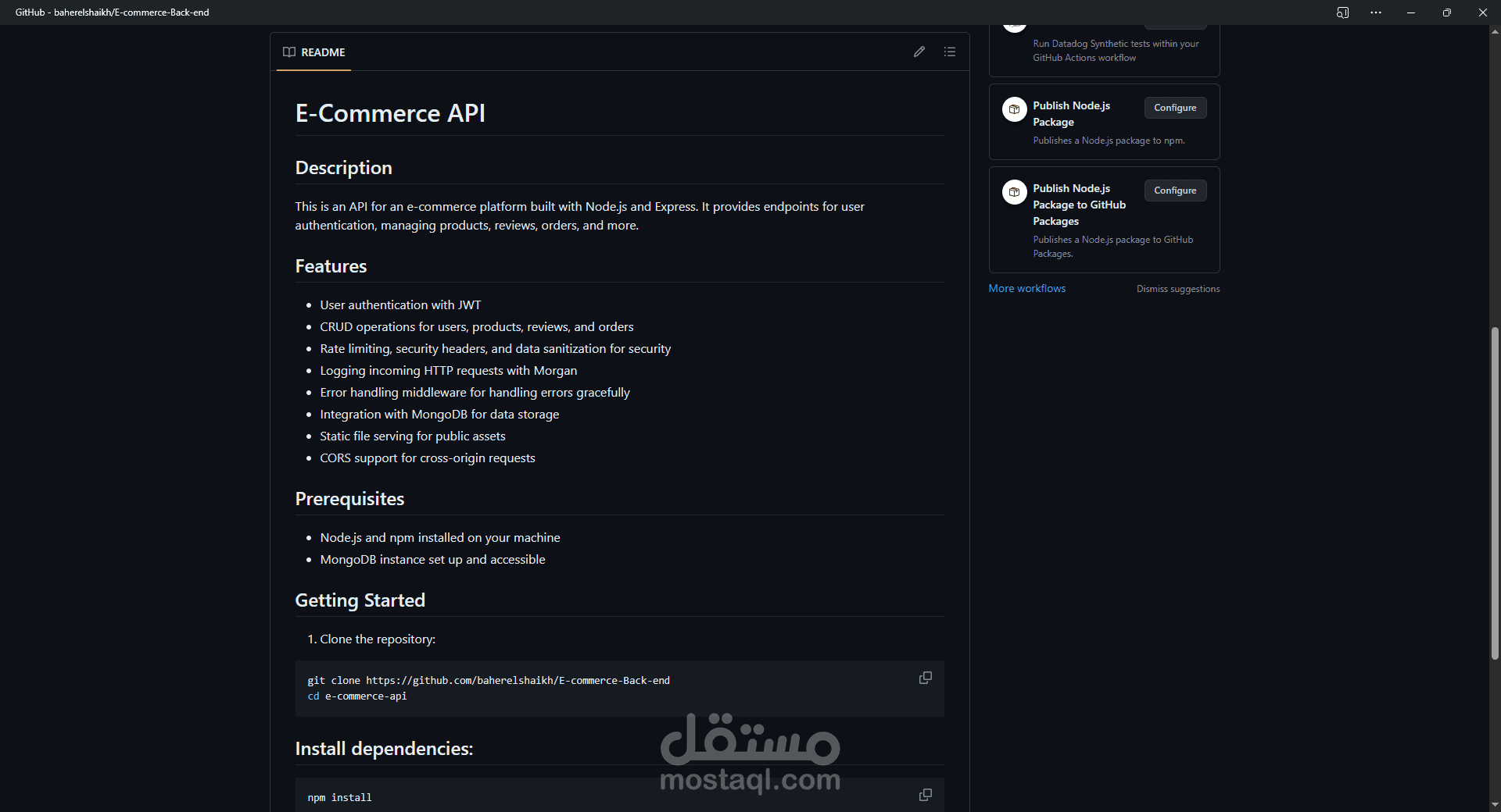 هذه واجهة برمجة التطبيقات (API) لمنصة التجارة الإلكترونية المبنية باستخدام Node.js وExpress. فهو يوفر نقاط نهاية لمصادقة المستخدم وإدارة المنتجات والمراجعات والطلبات والمزيد.