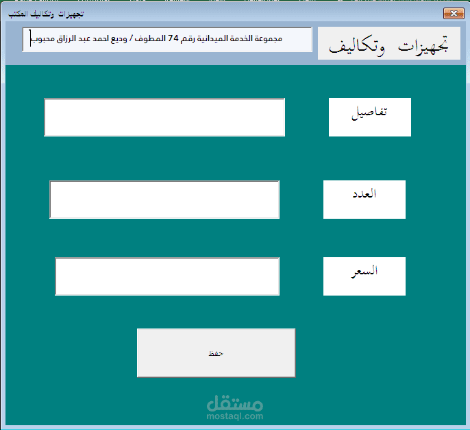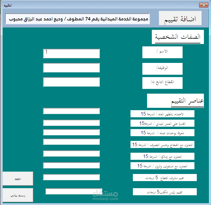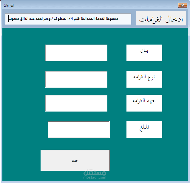 النظام مصمم باستخدام برنامج الاكسيل وفيجوال بيسك