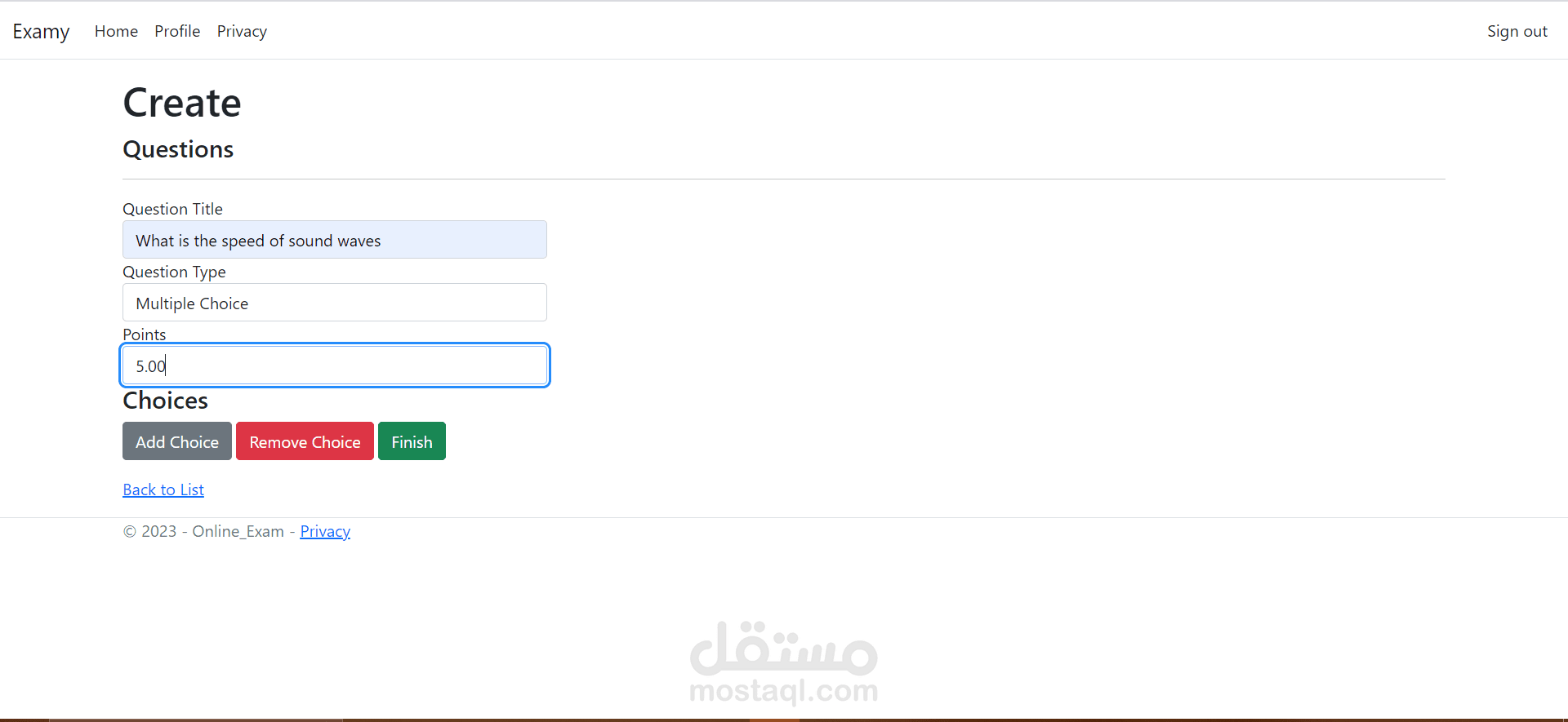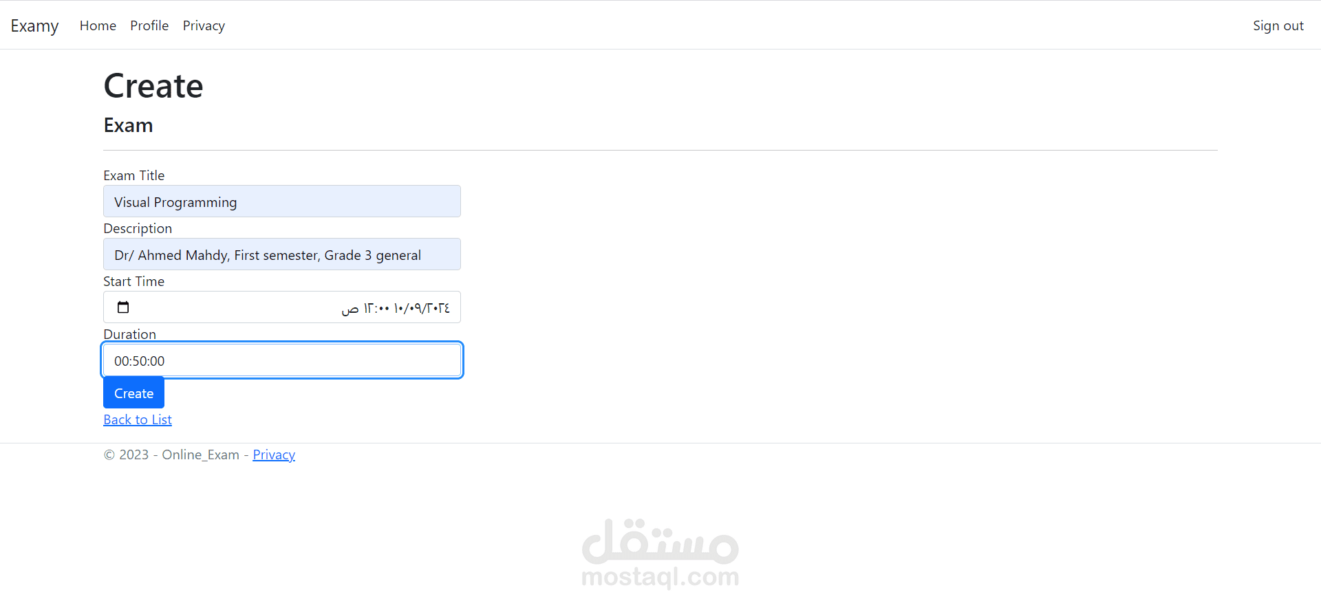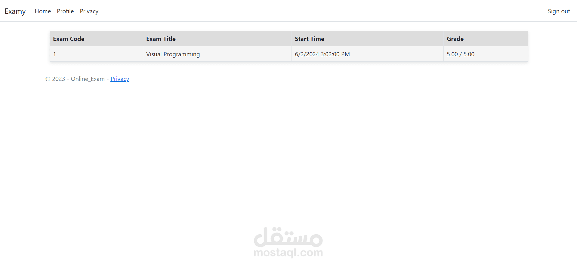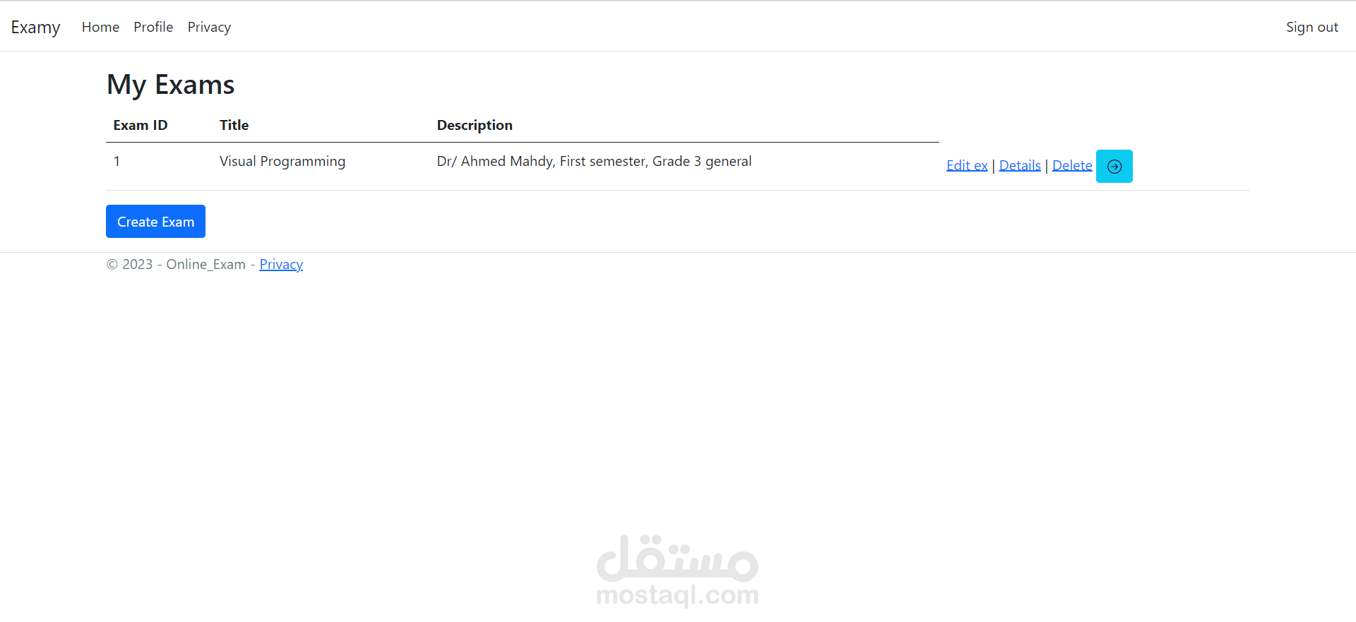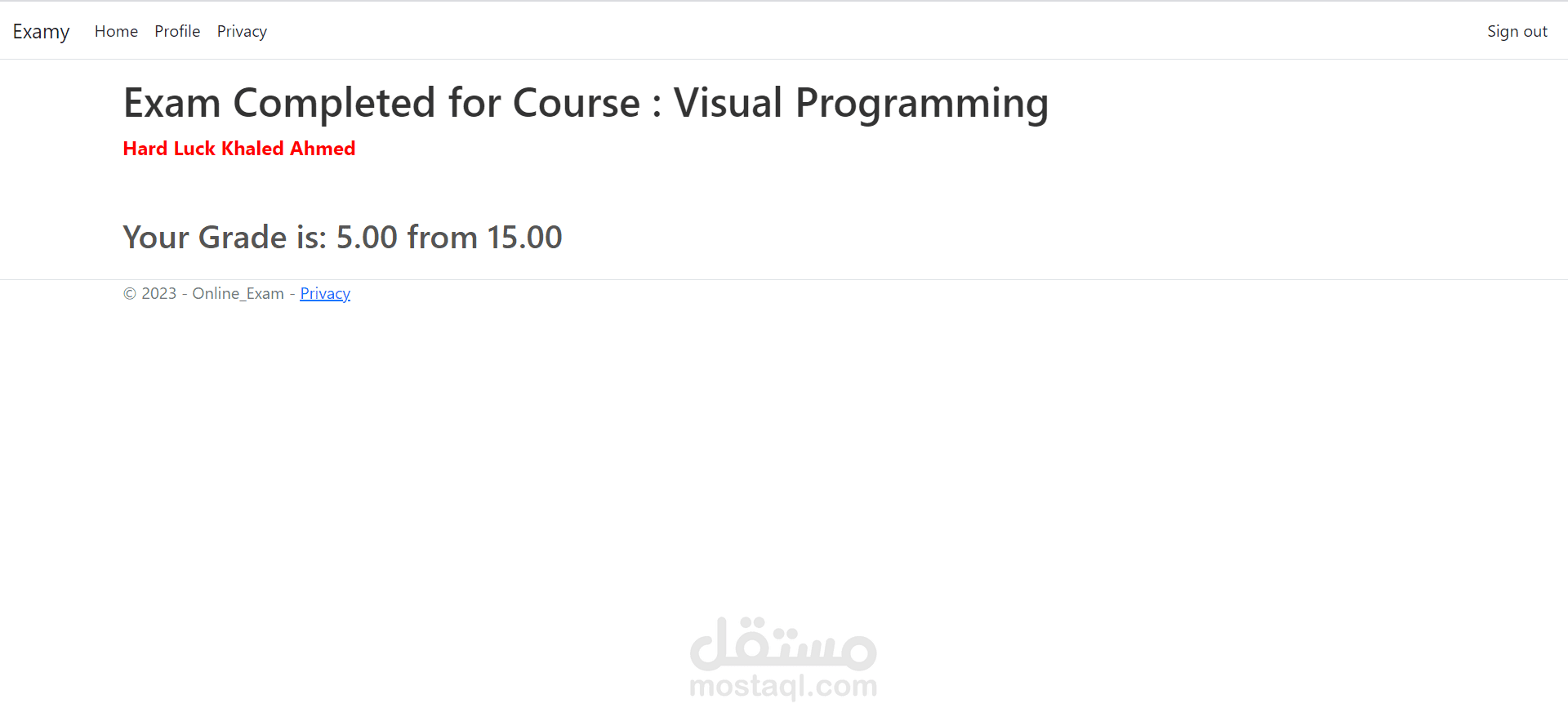 موقع الكتروني لقياس اداء الطلاب عن طريق امتحانهم علي الانترنت تم عمله عن طريق استخدام ASP .NET CORE ولغة سي شارب