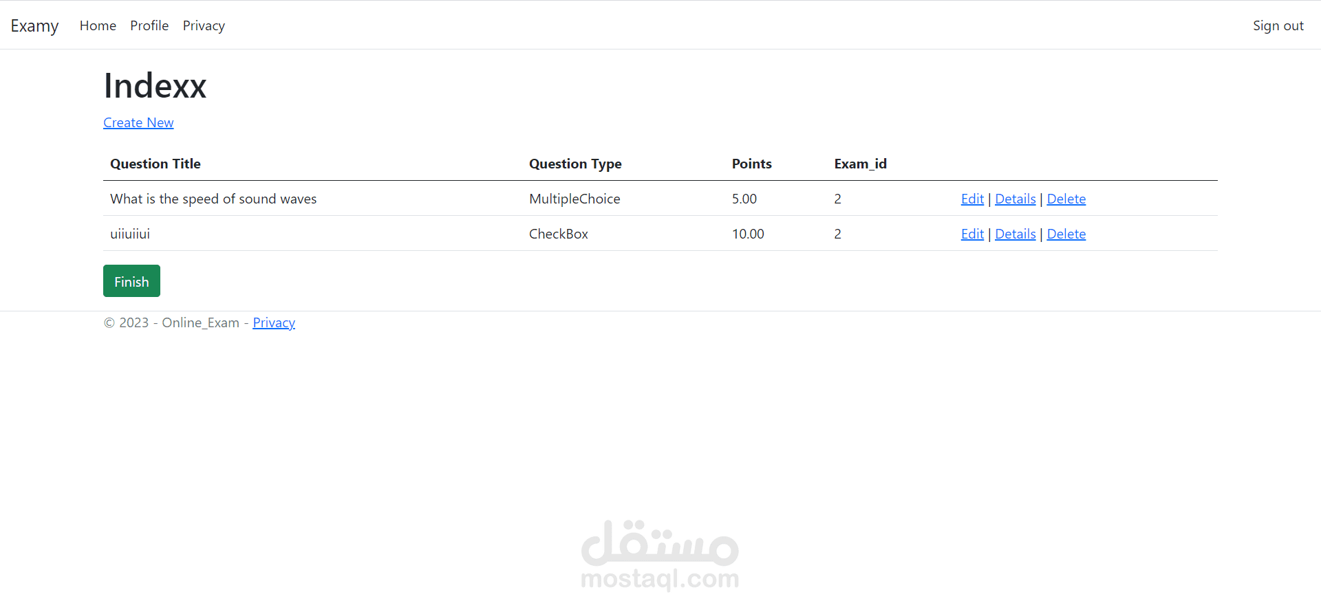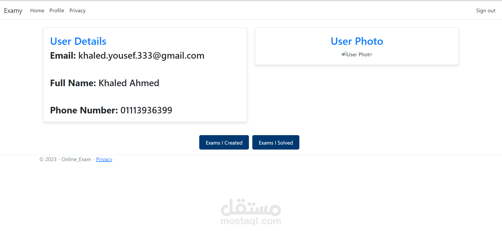 - ايضا من مميزات البروفايل رؤية الامتحانات التي قام المستخدم بانشائها ورؤية من قام بادائها وكم مجموعه.