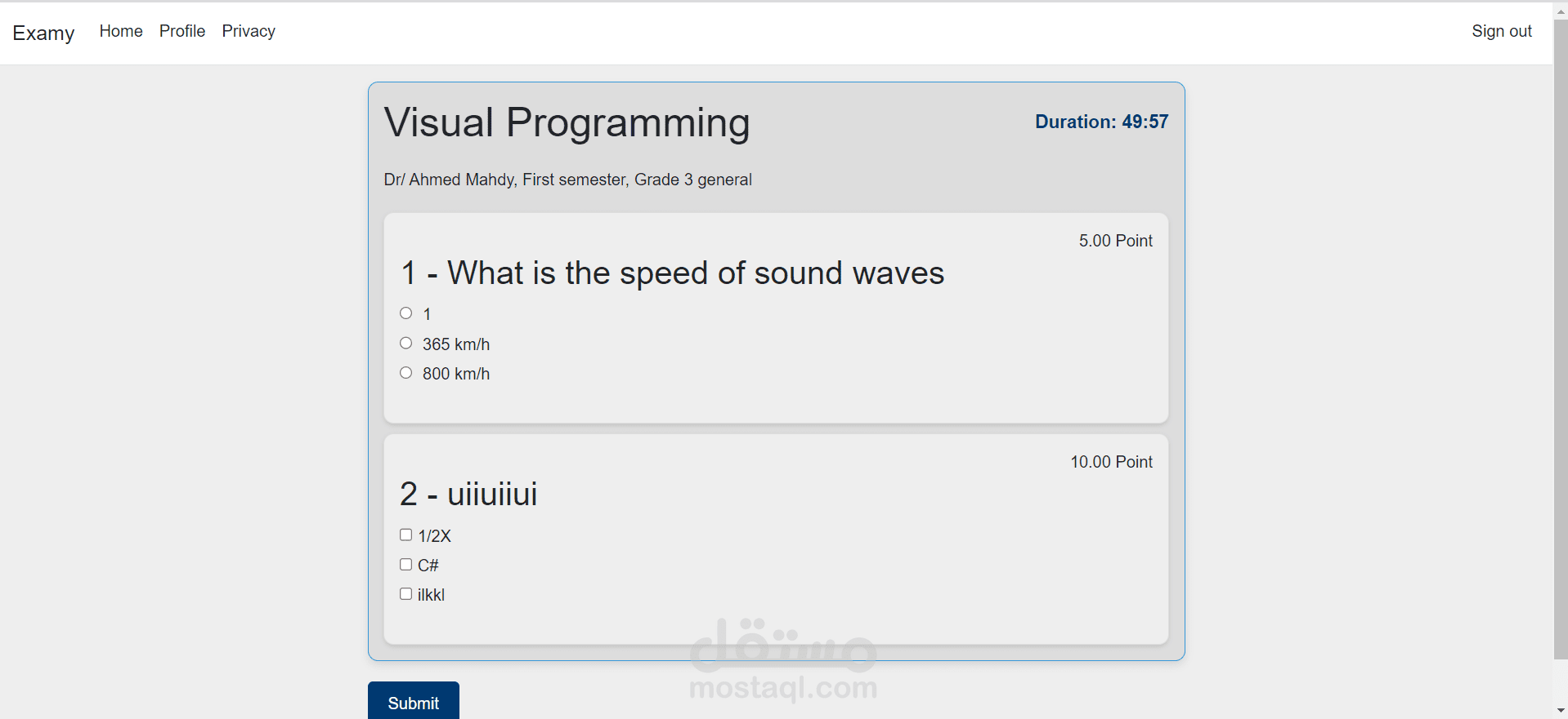 - يمكن لاي احد عمل امتحانات علي الموقع واي احد معه الكود يمكنه اداء الامتحان.