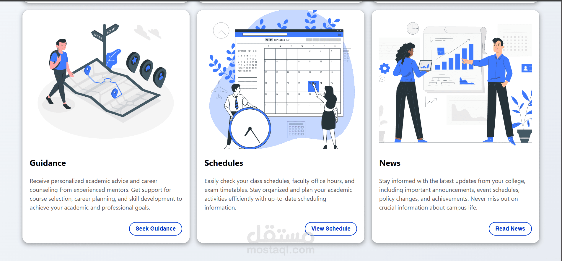 - يوفر ميزة الاخبار وهيا عبارة عن صفحة بها كل ما يخص الكلية من اخبار.
