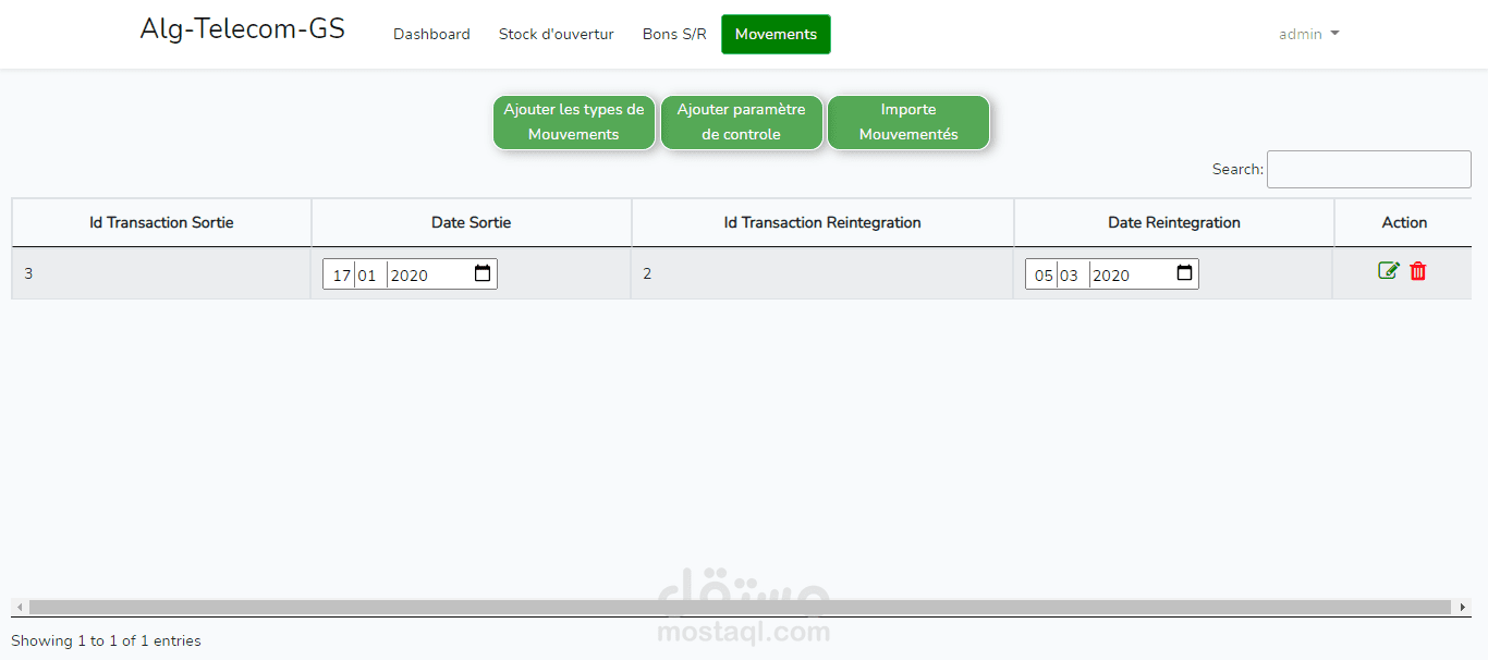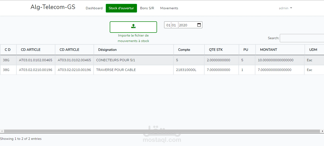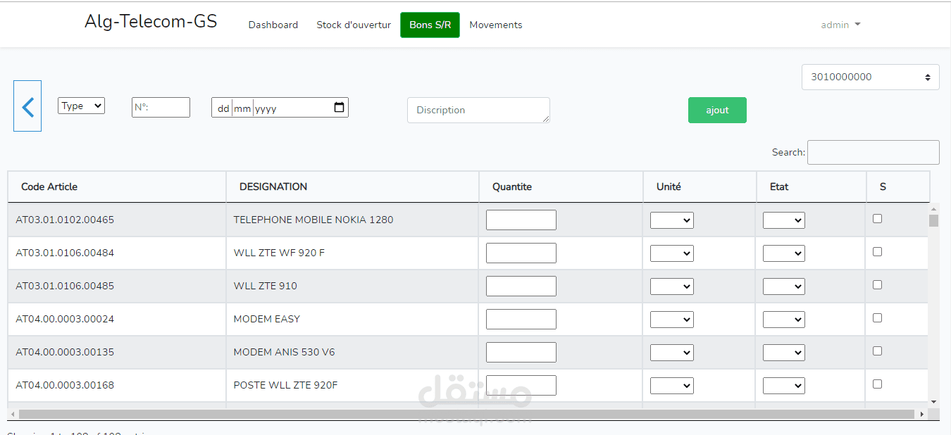 تم تطوير تطبيق الويب الذي يسمح بإضافة المنتجات والأدوات وحذفها وتعديلها والبحث فيها بالإضافة إلى تتبع المعاملات (استلام / تسليم الأدوات للعملاء بكميات مناسبة) كما يسمح التطبيق أيضًا بطباعة البيانات المعروضة وتنزيلها بصيغة PDF أو اكسل.