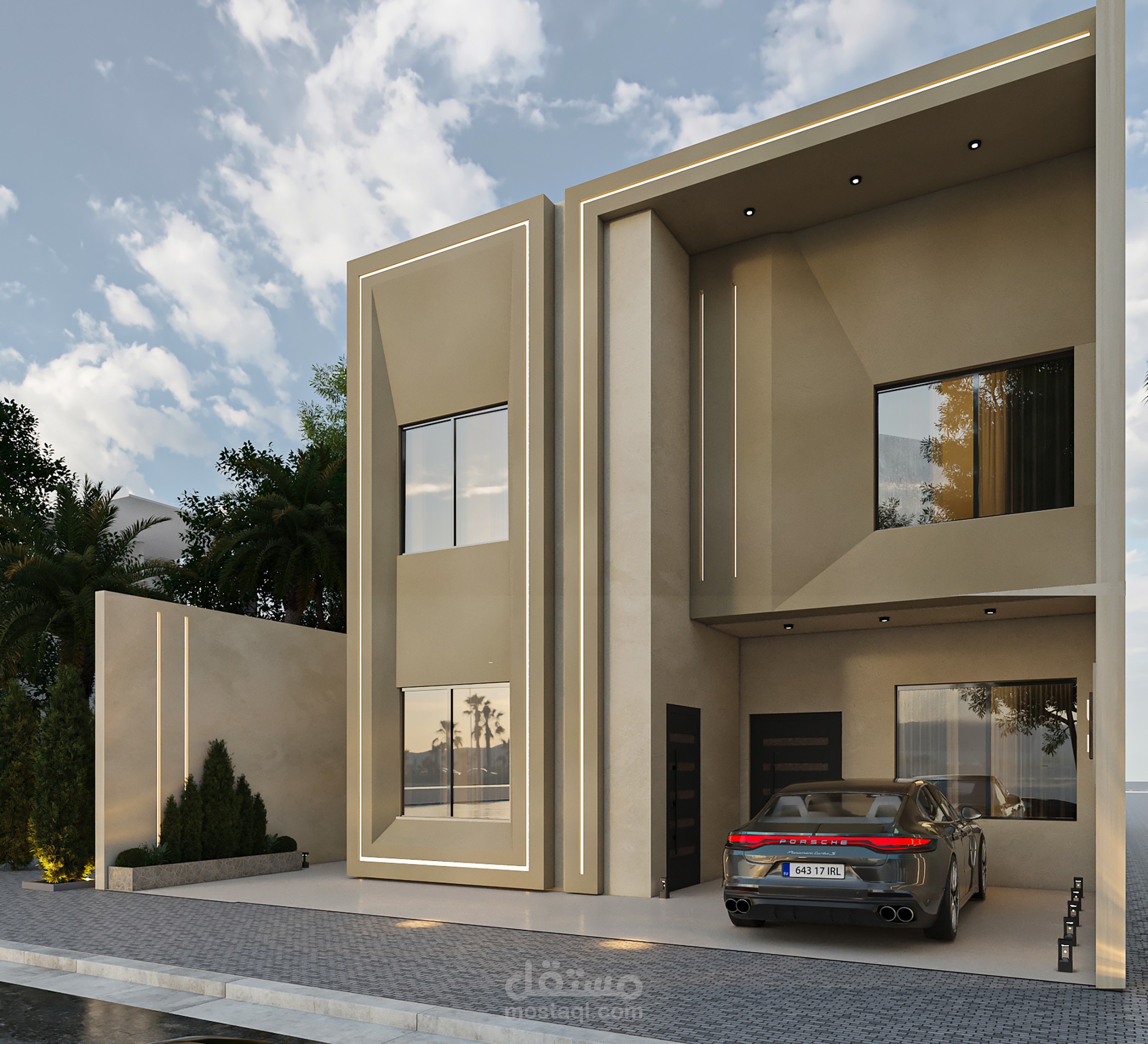 وتم العمل على ان تكون الواجهة ذات طابع مودرن وبسيط مما يعطي جمالية وتقليل من كلفة التنفيذ وتم انجاز المخططات التنفيذية الخاصة بالفيلا وتسليمها للعميل