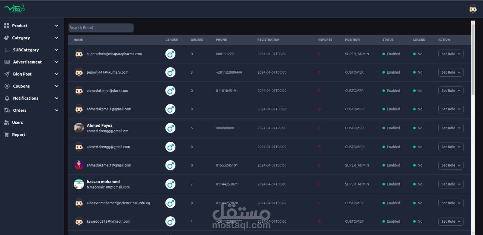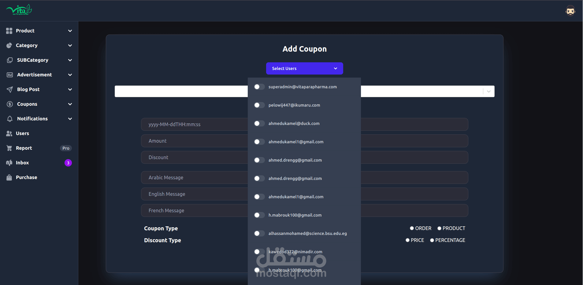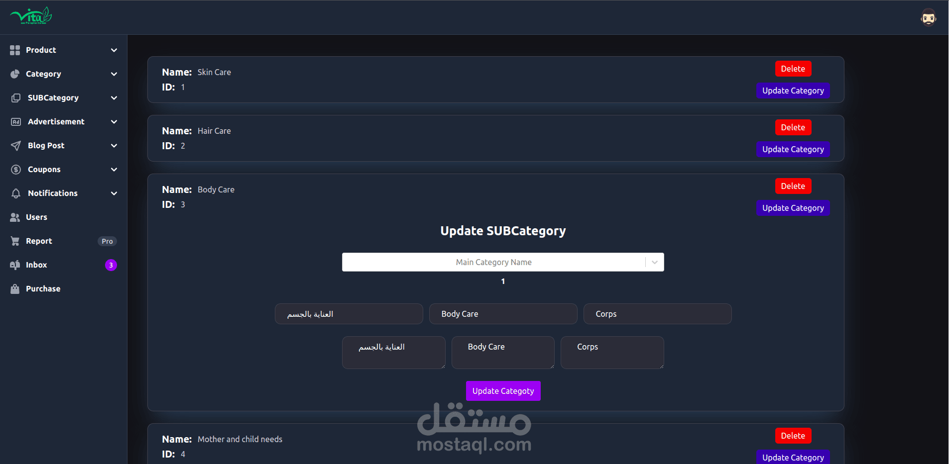 Vitaparapharma Admin Dashboard for Vitaparapharma Website, https://www.vitaparapharm... , it’s a system for pharmacy with multi languages , Manage all aspects of your e-commerce platform with ease. This admin dashboard controls products, categories, notifications, users, blogs, ads, and reports