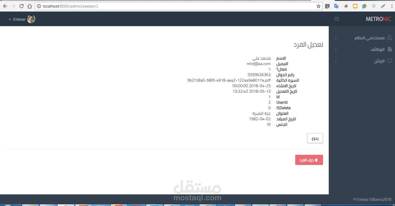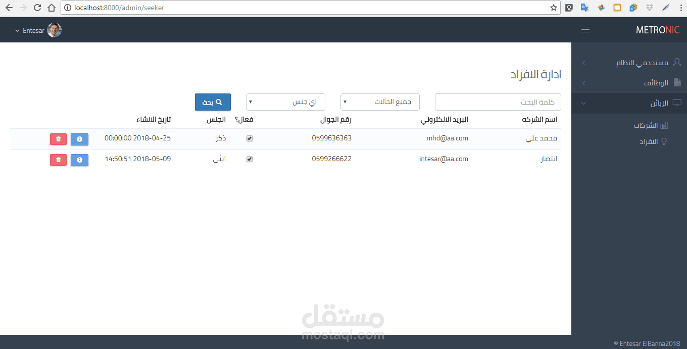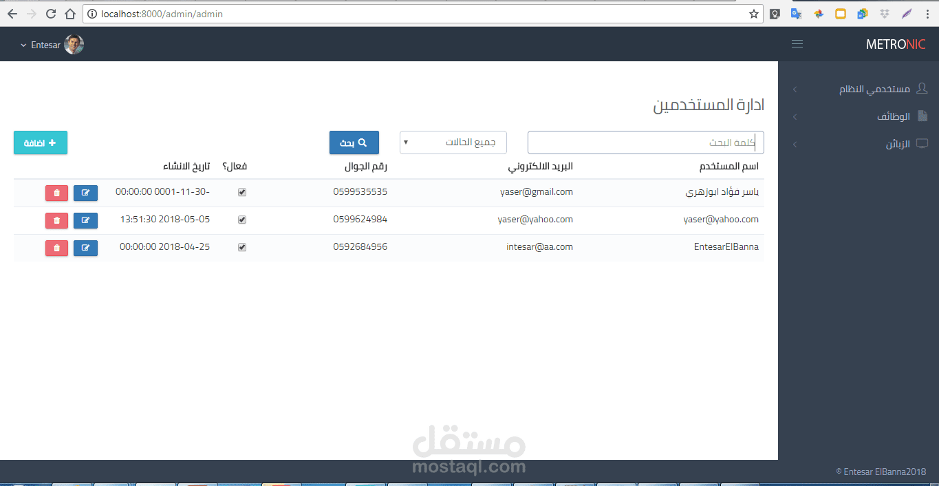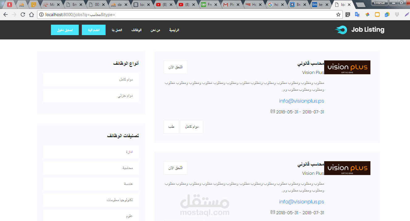هذا الموقع أنشأ بإستخدام المهارات التاليه PHP Laravel HTML5 CSS3 JQuery Bootstrap Ajax JS MVC MySql يمكنك مراسلتنا للتعرف على التفاصيل واليه سير الموقع