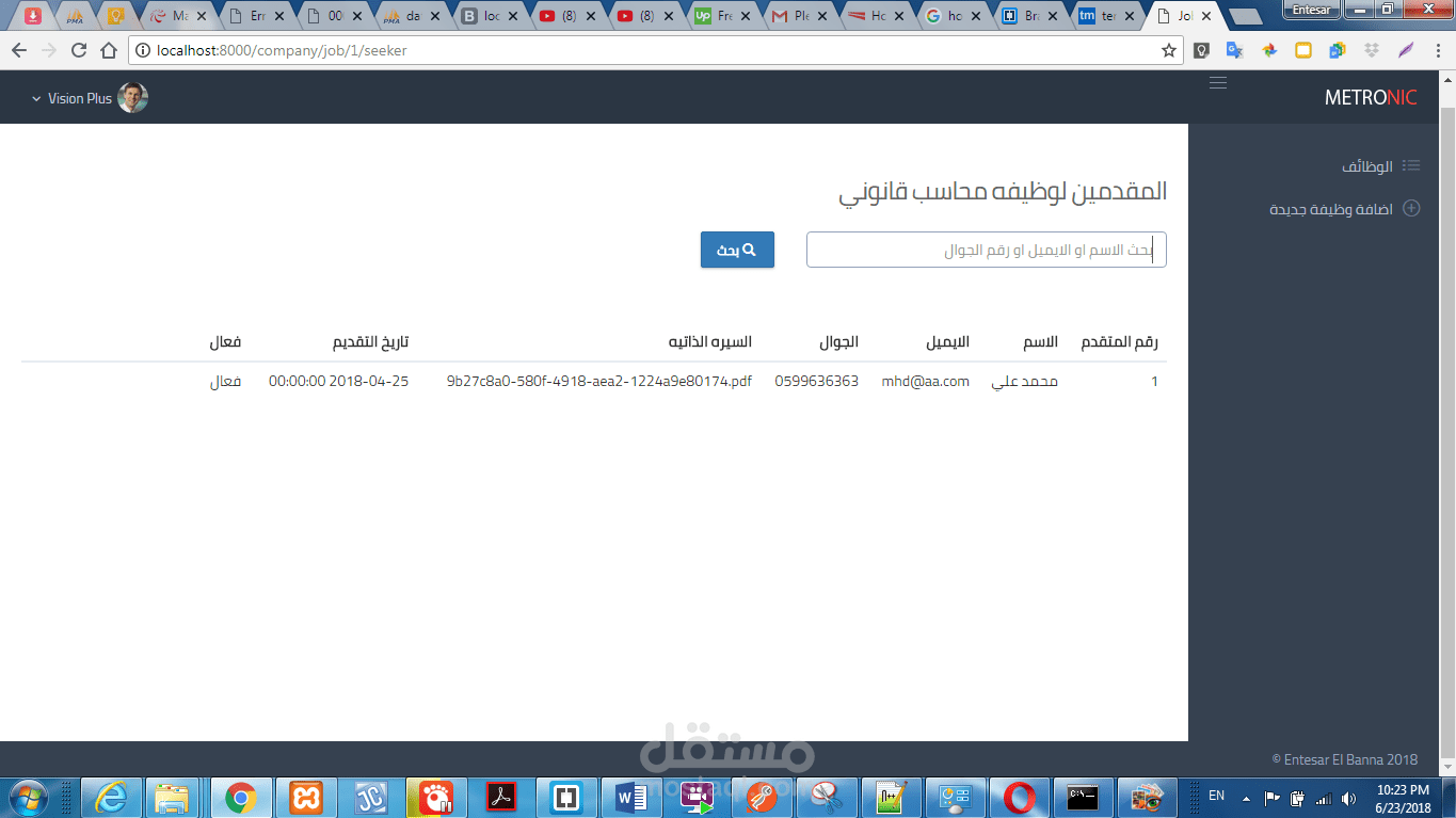 نظام توظيف... يمكن للباحث عن العمل أن يقدم على أي من الوظائف المعروضه و أن يتحكم بحسابه الشخصي وبالوظائف المقدم اليها و يمكن للشركات المشاركه أن تعرض وظائفها وأن تتحكم بحسابها الشخصي و الوظائف اللتي تقدمها من إضافه وبحث وتعديل وخذف ويمكن لمشرف الموقع التحكم بنوعي الزوار (الشركات والافراد) والتحكم بحسابه الشخصي والتحكم بالوظائف بطريقه متطوره وسريعه...