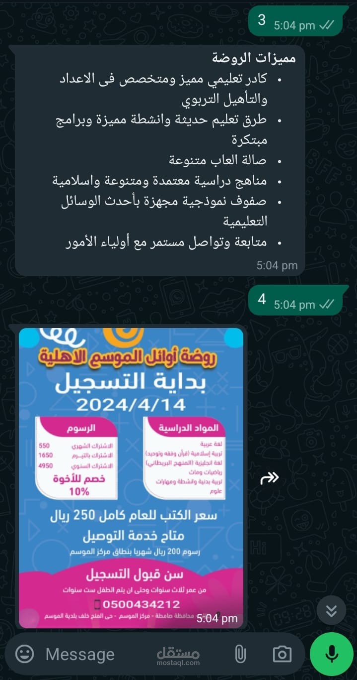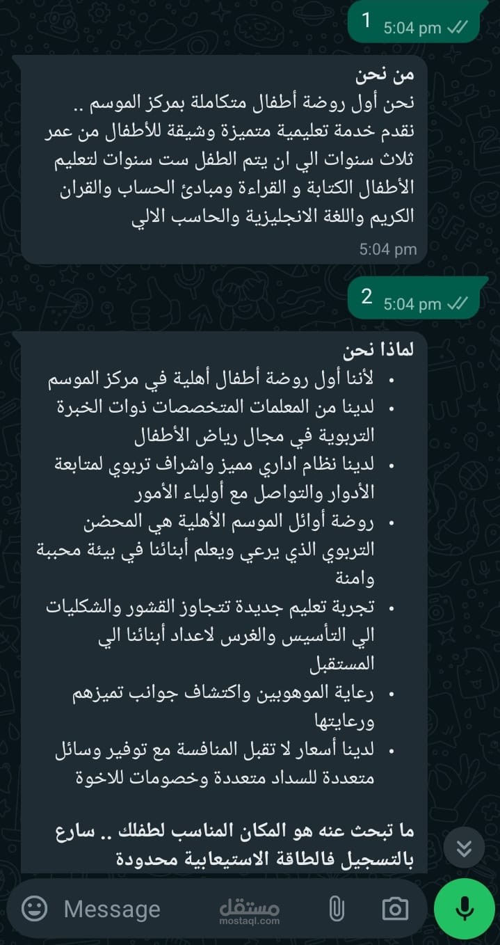 بوت واتساب للرد الالي خاص بروضة أطفال