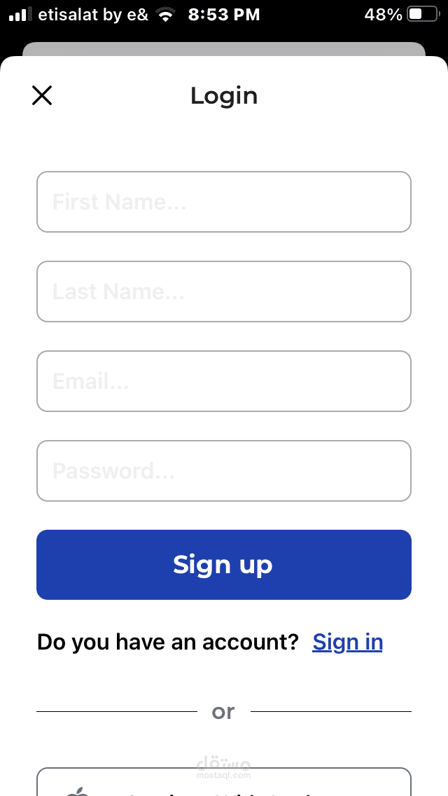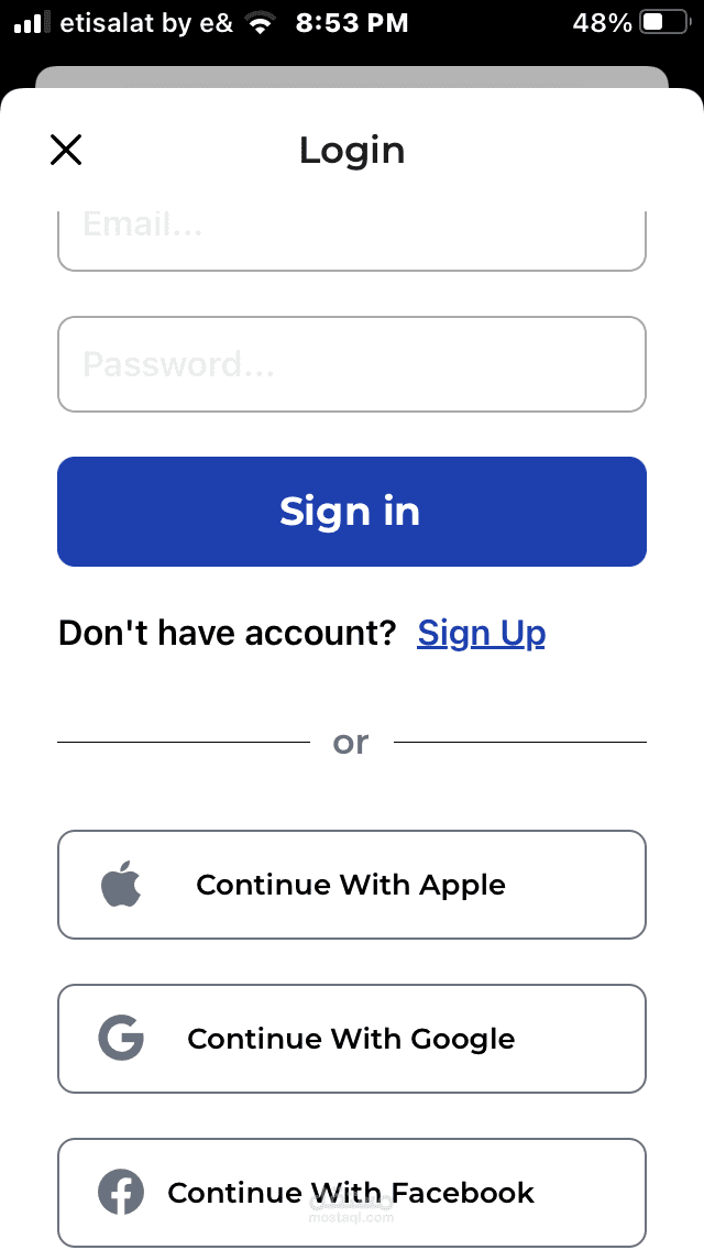 ١- يمكن للمستخدم تسجيل الدخول و تسجيل حساب جديد عن طريق الايميل او جوجل او ابل او فيسبوك