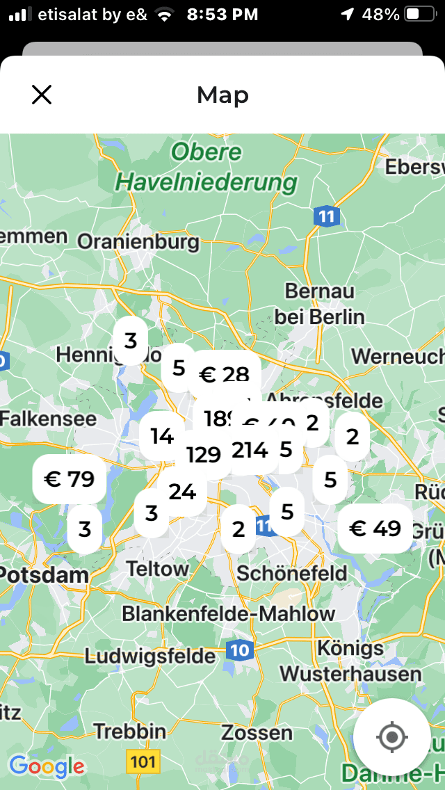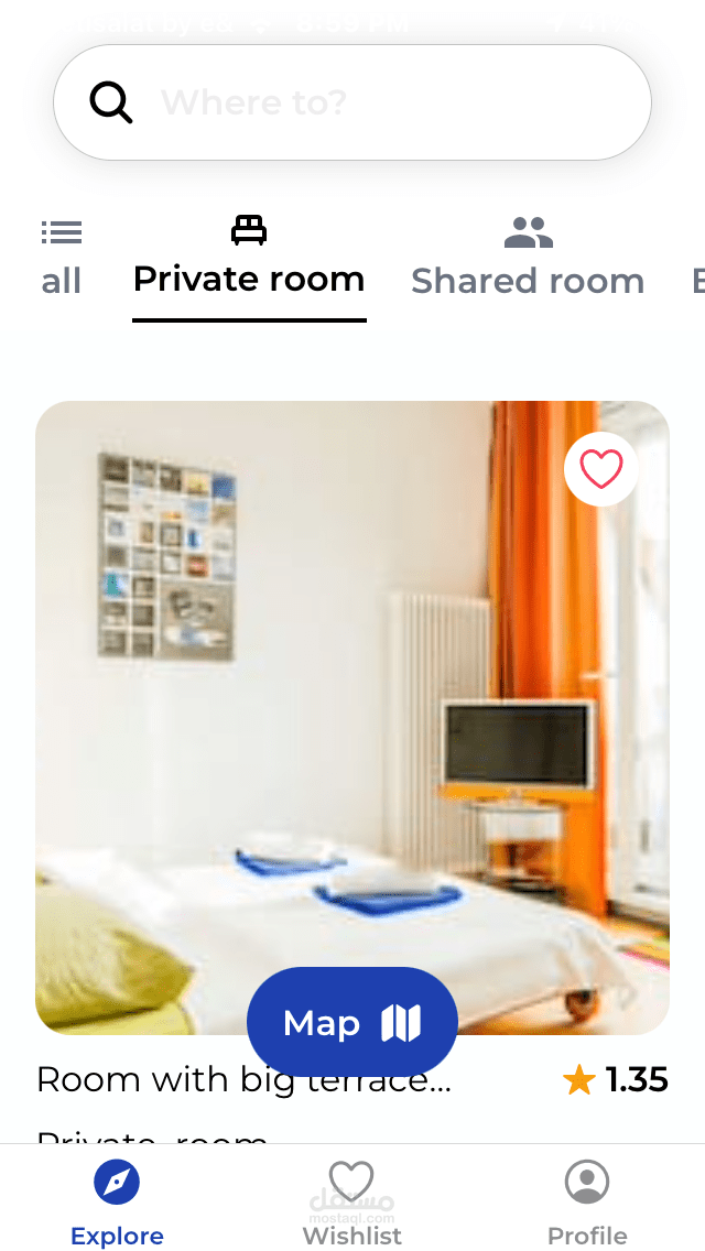 ٢- يستطيع المستخدم تصفح البرامج و حجز البرنامج الزي يعجبه يمكنه التصفح عن طريق قائمة من البرامج او عن طريق الخريطة فيضغط علي mark مكتوب عليه قيمة البرنامج فيفتحه له