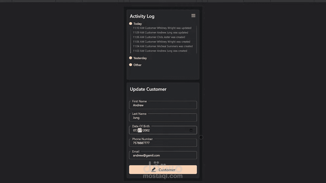 A web application for managing customer data. It offers functionalities to create, read, update, and delete customer information (CRUD operations), making it a Customer Relationship Management (CRM) tool.