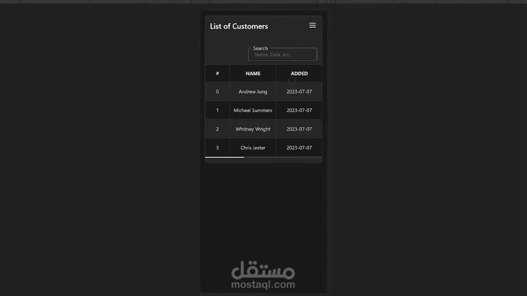 Users can search for specific customers by name, date associated with the customer (e.g., signup date), phone number, or email address.