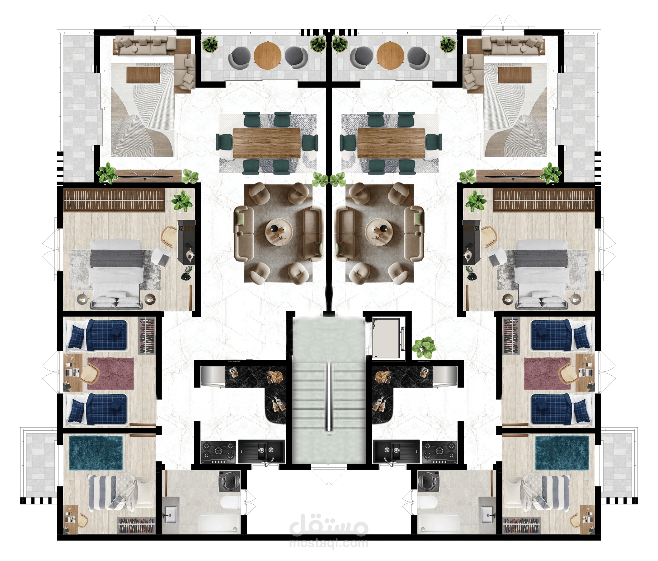 تم التصميم عن طريق برنامج الريفيت revit و الاظهار عن طريق اللوميون و الفوتوشوب lumion & Psd