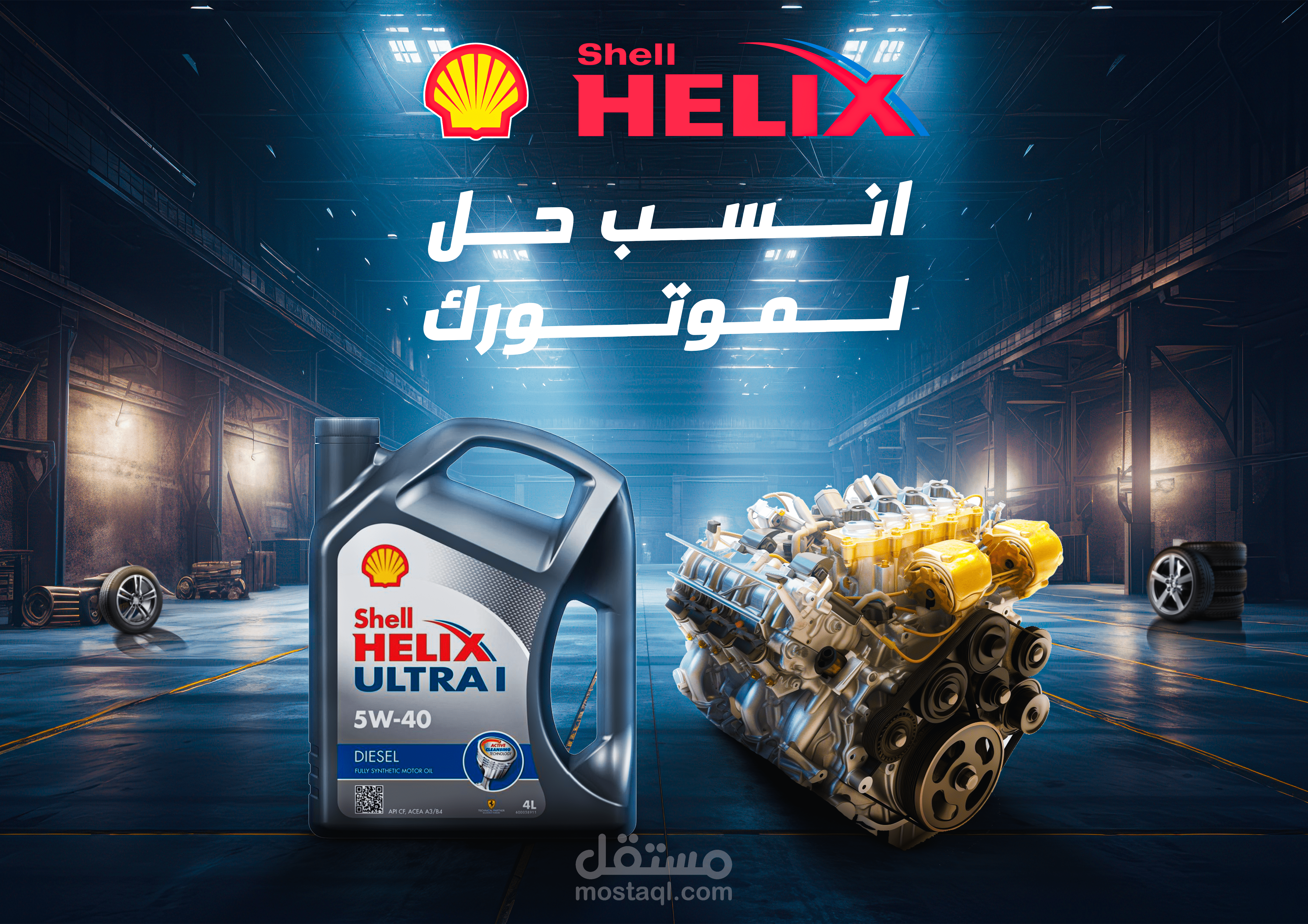 تصميم خيالي لشركه Shell Heilx الخاصه بمنتجات السيارات وذلك لابراز منتجاتها وعرضها بصورة تجذب العين وتوضيح اهميه منتجاتها