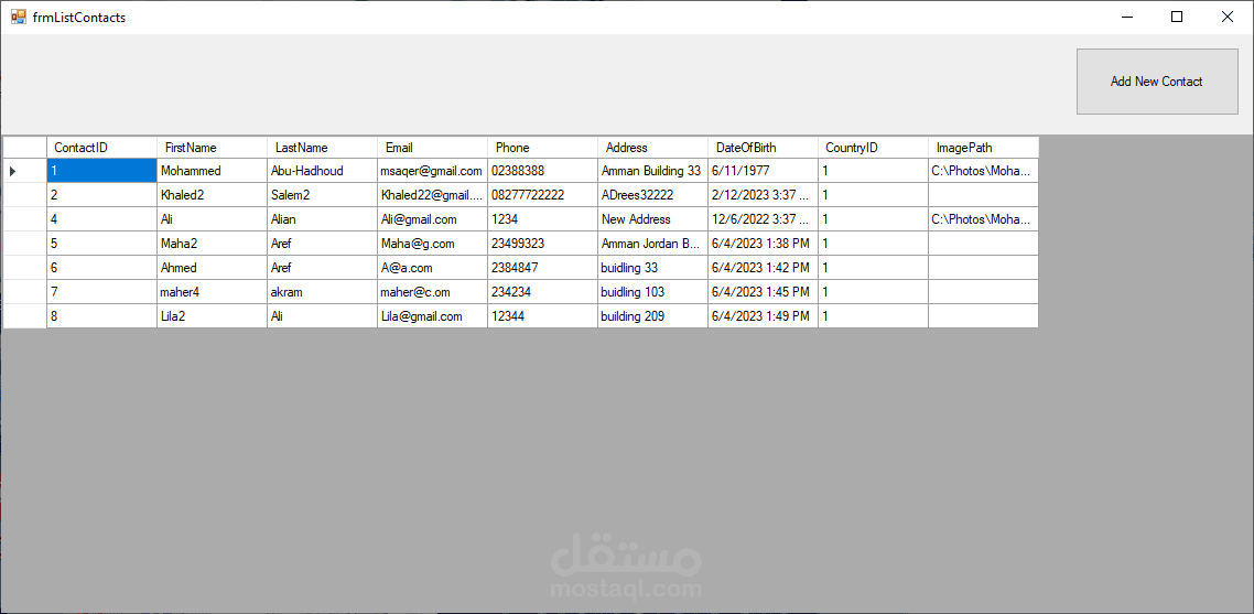- تنفيذ الوظائف الخلفية، مثل إضافة، وتحرير، وحذف الاتصالات.