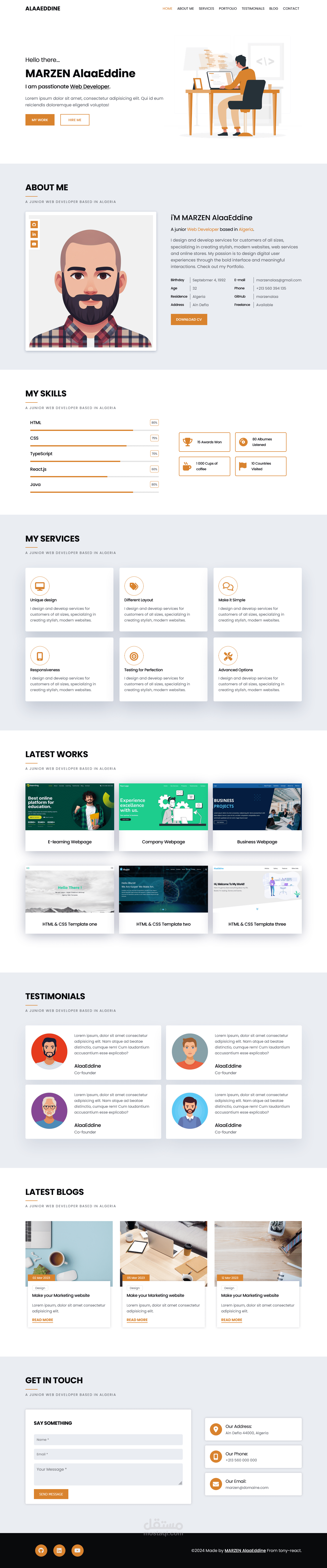 هذا الموقع عبارة عن معرض أعمال Portfolio يسمح للزبون بعرض جميع أعماله وكذا مهاراته للحصول على عملاء وزبائن.