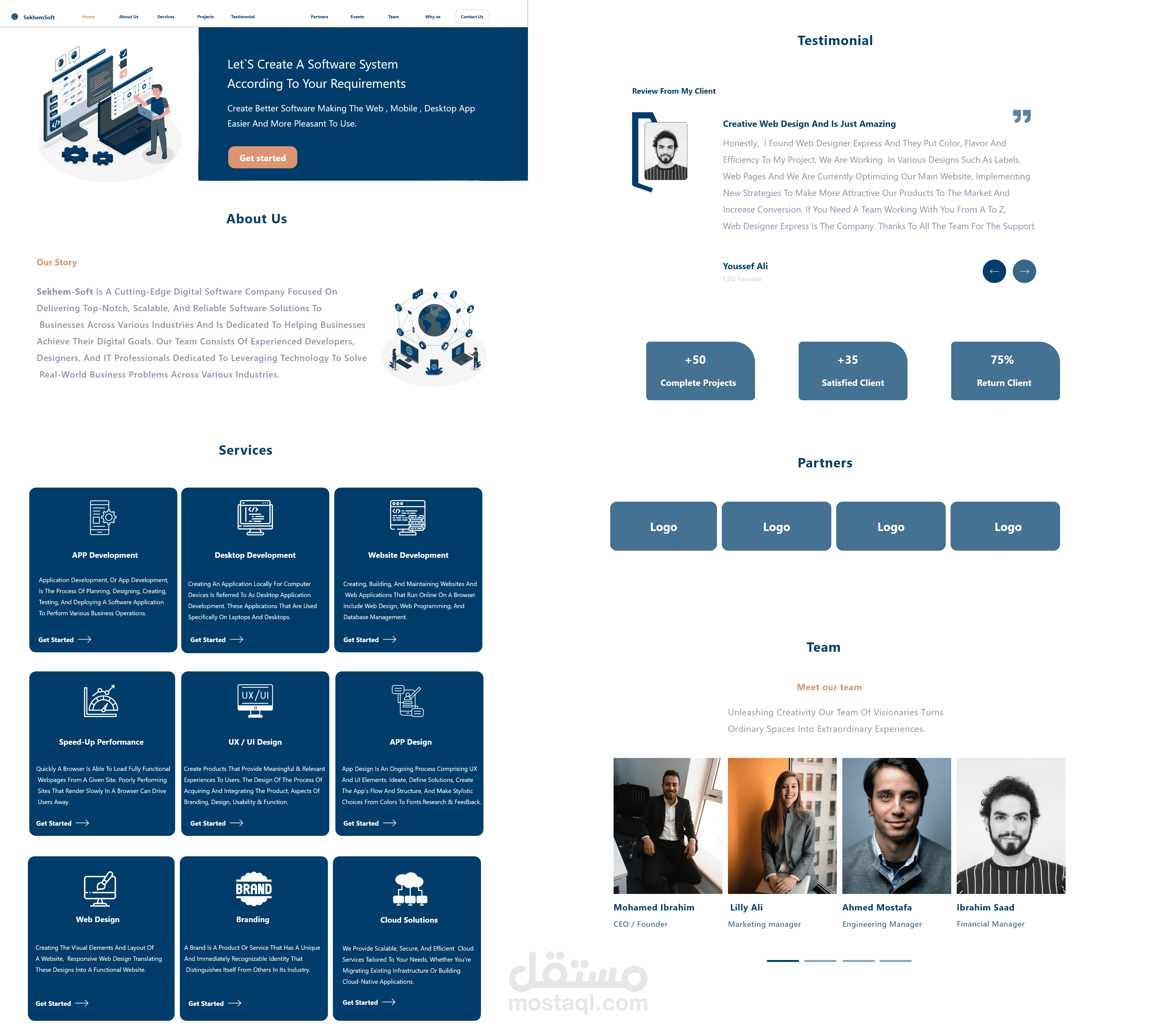 . التطوير : تم برمجة الويب سايت بلغة JavaScript , Bootstrap , Sass , CSS , HTML , ASP Dot Net