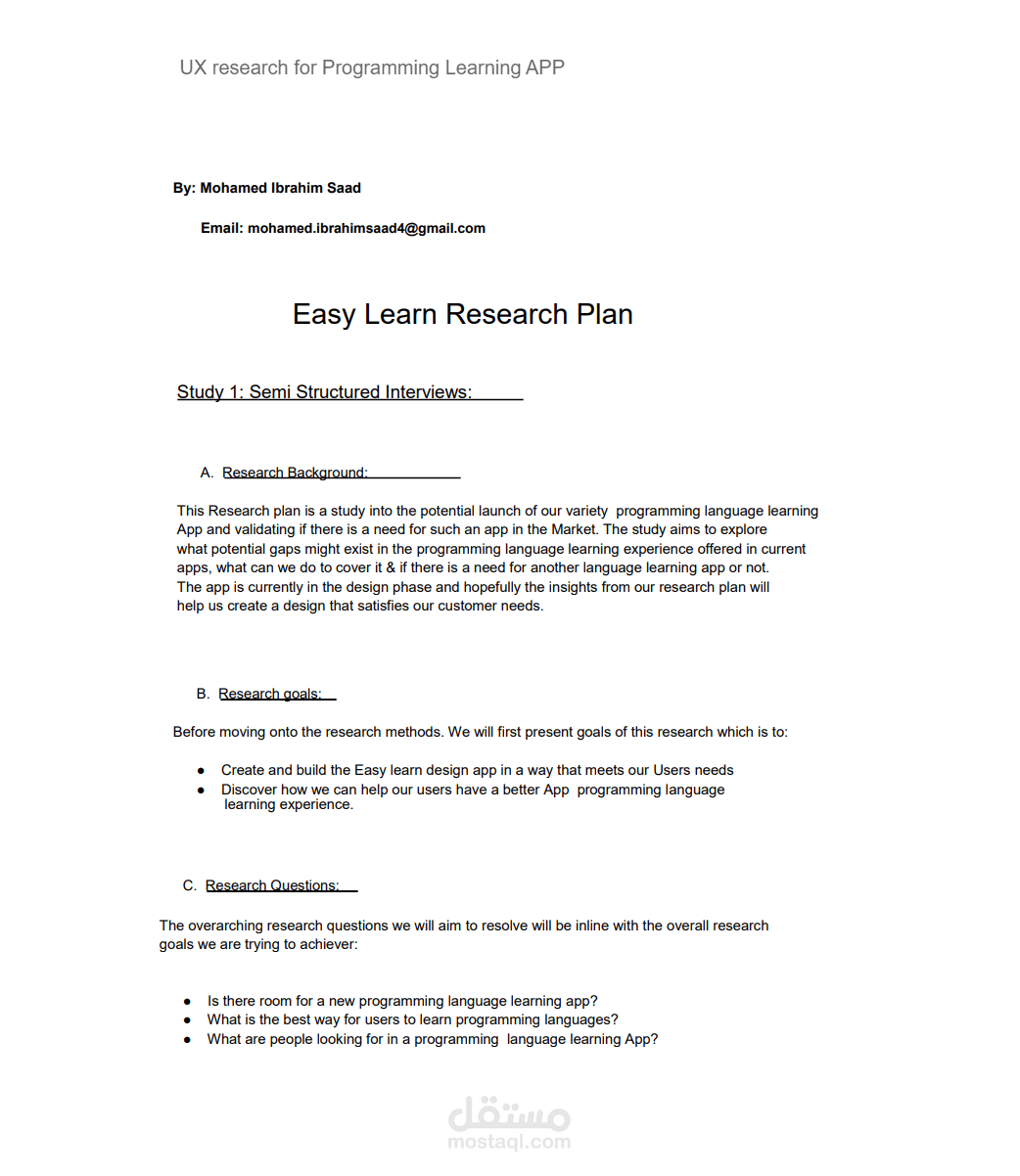 1- Easy Learn Research Plan