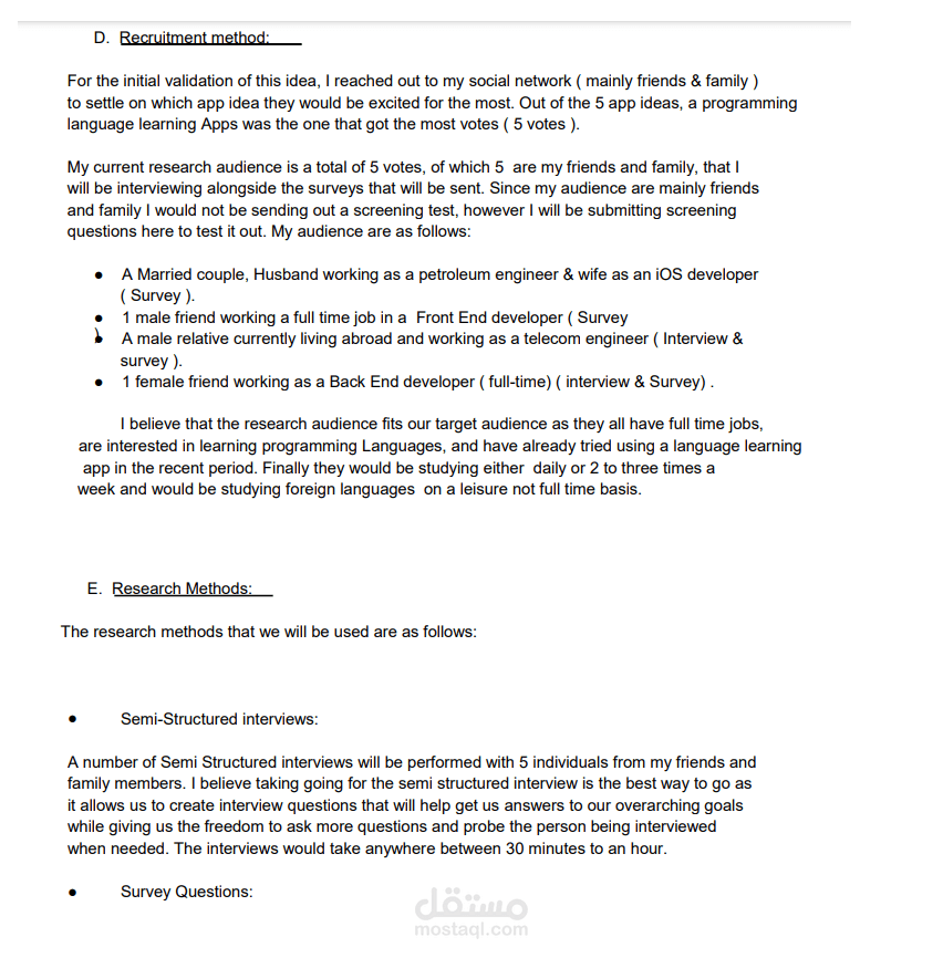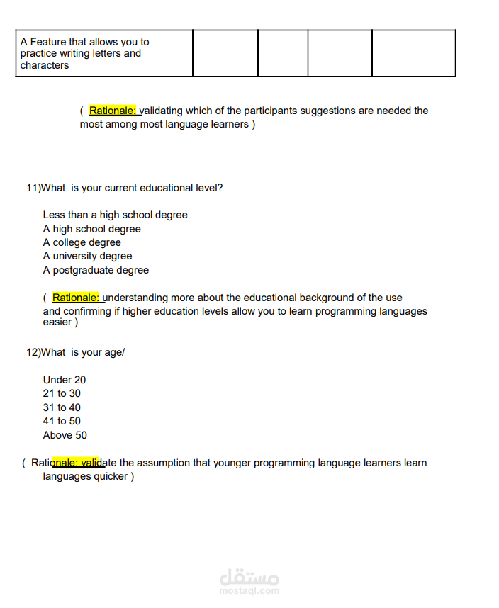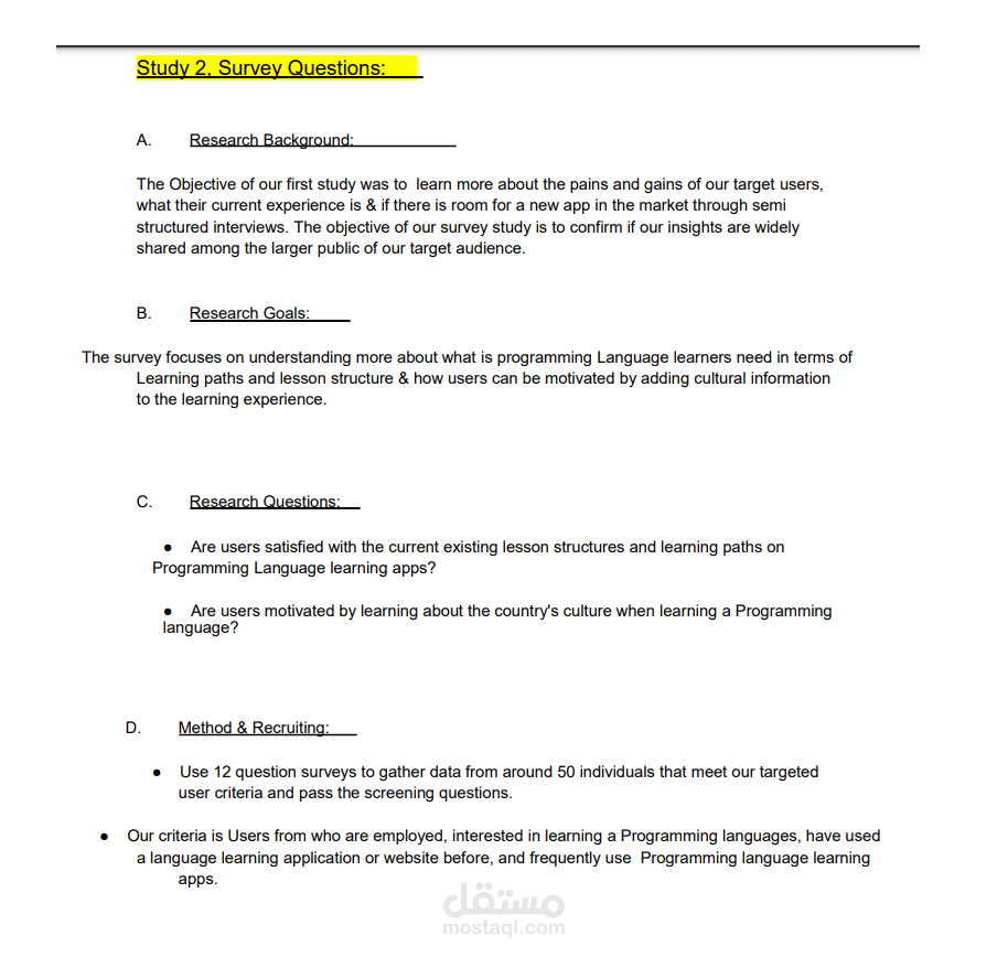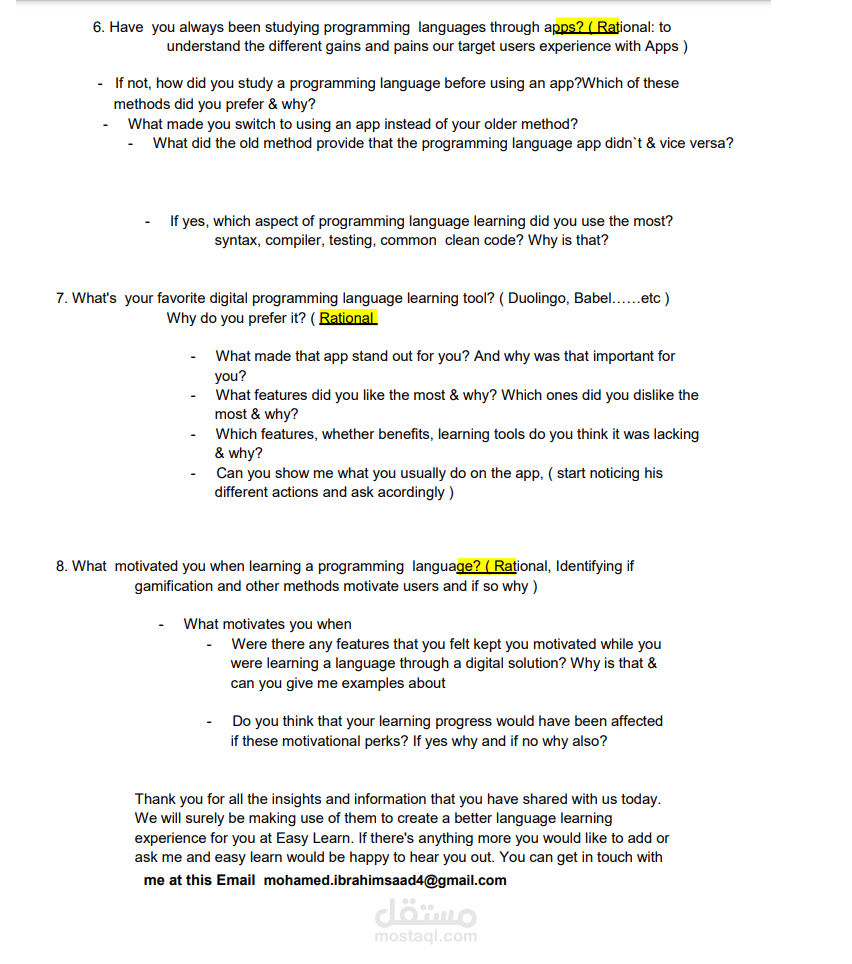 تجربة المستخدم وكتاية بحث عن المستخدمين من اجل إنشاء تطبيق لتعلم لبرمجيات